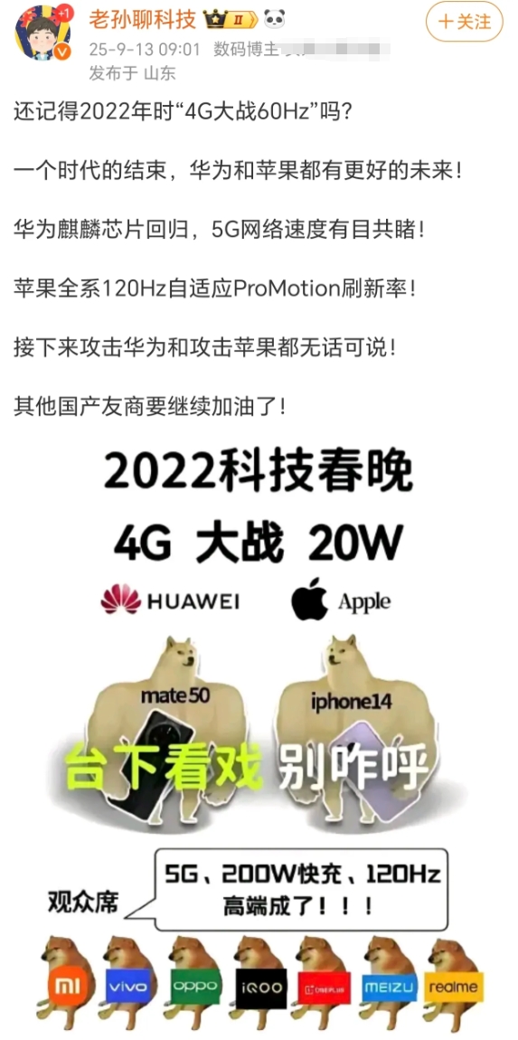 什么叫高手之间的惺惺相惜,当初华为被美国制裁,高通等了两年,苹果直接等五年。如今华为解决了芯片,系统自主可控的问题,苹果也补齐了高刷。甚至于苹果的最高配和华为的三折叠一个价格。 或许对于其他想要在高端市场分一杯羹的品牌来说,这两家同时发力,压力还是很大的。