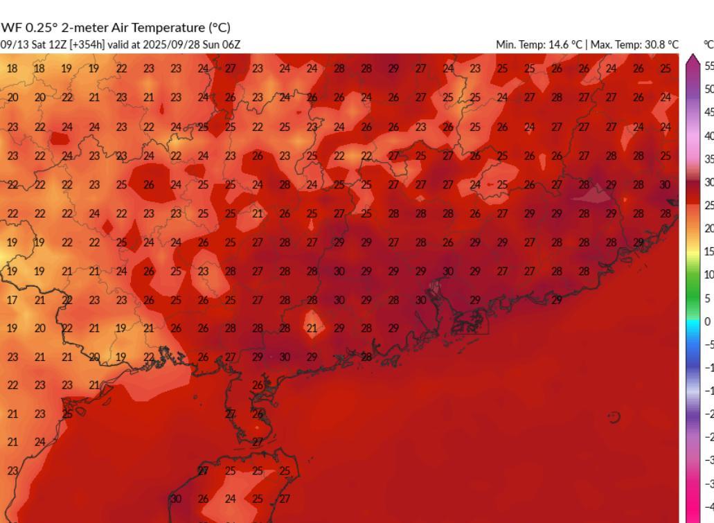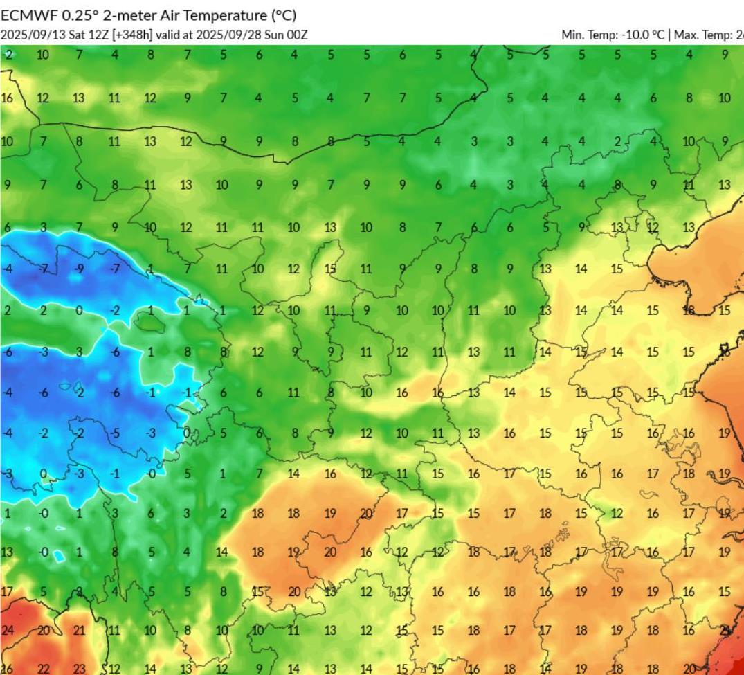 根据今天的数值预报,9月28日我国南方依然有副热带高压影响,而且副热带高压和西藏的陆地高压联起手来。 虽然说高空有副热带高压,但是低空以及地面一带已经开始有冷空气了。 9 月28日,我国中东部地区有冷空气南下,冷空气冷高压中心1035 百帕。 到了这个季节来了,虽然说高空依然会有副热带高压,不过低空冷空气开始逐渐频繁,所以副高就显得有点虚火了。 从温度预报来看,9月28日下午,重庆一带的温度有可能在22 度左右,这个温度应该说是已经非常舒适了。不过南方有的地方还是会觉得有点炎热。 这是由于冷空气一路长途跋涉,到了南方以后实力会明显的减弱,再加上高空还有副热带高压,所以像湖南、江西、广东一带白天下午温度依然有可能在28~30 度左右。 不过 28号早上湖南、江西一带的温度还是会回落到不足 20 度,已经开始能够感受到一丝丝清凉了。