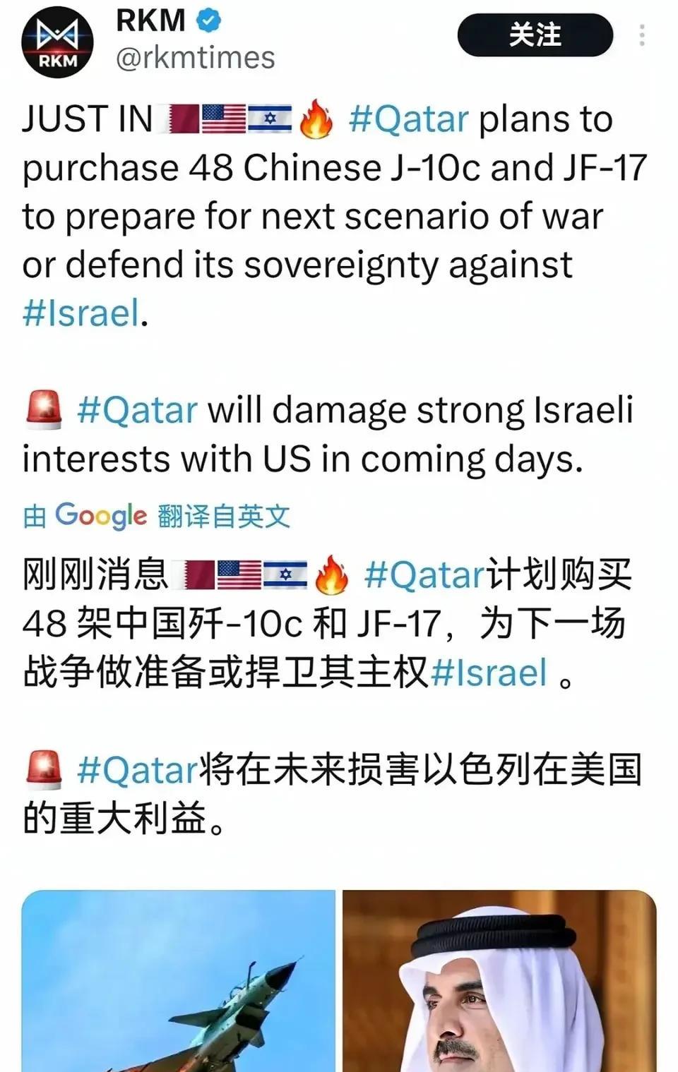 外媒热议:卡塔尔要购买中国战机:歼-10CE或歼-35A.被以色列炸醒了! 9月12日以色列出动8架F-15战机,4架F-35I 战机为护卫,发射导弹以打击哈马斯为由,向卡塔尔境内发射导弹,攻击一个中东的主权国家。而最终在9月14日以色列总理表内 哈马斯高官司并未被轰死,同时以色列总理内塔尼亚胡表示,如果有哪一个国家敢收留哈马斯官员,以色列就对他们军事轰炸。其用意指向土尔耳! 扰《华尔街日报》透露消息,以色列战斗机没有经伊拉克南下,而是直接在红海上空,发射了射程超过1400千米的空射弹道导弹,飞跃沙特上空,精准击中哈马斯代表位于多哈的驻地,这就有点太离谱了。 而以色列的导弹发射 让卡塔尔境内的美制爱国者导弹及萨德导弹毫无反应的情况之下,击中卡塔尔境内目标。就算卡塔尔境内的爱国者防空导弹未发现导弹轨迹,但美国的军事卫星及中东强大的防空系统难道一点都没有发现吗? 以色列很清楚 卡塔尔与美国的关系,如果没有在美国的授权之下,以色列肯定不可能对卡塔尔发起攻击的。更何况,卡塔尔驻扎了上万名美军,是美国在中东地区最核心的驻地,难道驻卡塔尔的美军基地都是吃素的,竟然也没有发现以色列导弹,如果这样的话,美军的高官必将送上军事法庭。 所以在此整个过程中,卡塔尔就是吃了哑巴亏。喊了几句,美国根本不理会,更不要想有美国日撑腰的以色列会向卡塔尔低头。美国暧昧的态度,以色列表明美国授权,而特朗普又说不知道,如此相互推推诿,让卡塔尔越发清醒,美国的武器的靠不住的,美国政府更加不靠谱! 而5月7日印巴空战 一战成名的中国歼-10CD及防空红旗导弹 包括巴基斯坦接下来要购买的歼-35A 卡塔尔看上了,体系作战的不管歼-35A战机比美国F-35在机动性与远程交战能力占上风,同时中国的体系作战 可以让歼-10CD 歼-35A 看得更远,探测距离更远,更加准备的反击,而摆脱美制装备正是时间,全世界都知道美国的战备都具有远程“开关”,也许正是因为远程“开关”让卡塔尔的防空系统哑火了!