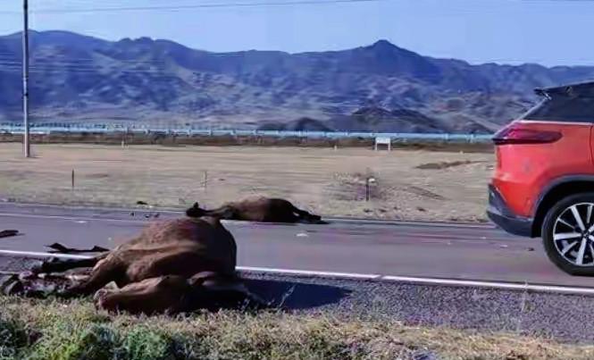 新疆伊犁,一男子自驾游,在国道上行驶,突然撞到马群,6匹马被他撞死,其中大马3匹