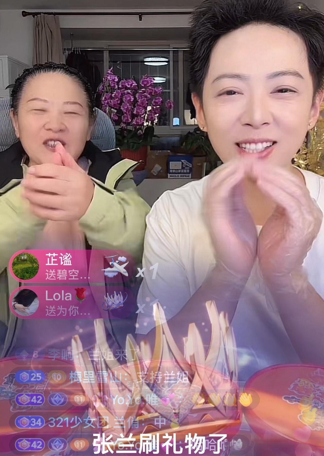 张兰现在在阳阳直播间呢! 来看阳阳和妈妈的直播!张兰一进直播间,先给阳阳刷了几个礼物,大家一看张兰进来,气氛立马热闹起来了!纷纷和张兰打招呼! 阳阳妈妈很感动的说:我不会讲客气话,但是我这孩子在你那里,我是最放心的,感恩以往的照顾大姐姐[祈祷][比心] 原来阳阳妈妈比张兰小一岁! 阳阳说:我以前就跟宝宝们讲过,我妈妈跟兰姐年龄相仿,所以以前兰姐讲上山下乡啊她小时候的一些事,我就觉得很亲切,因为我妈妈有时候在家里也会提起她们那个年代的一些事情…… 兰姐在直播间里打字向阳阳妈妈问好!直播间里的氛围因为张兰的到来,变得格外热闹,温情……