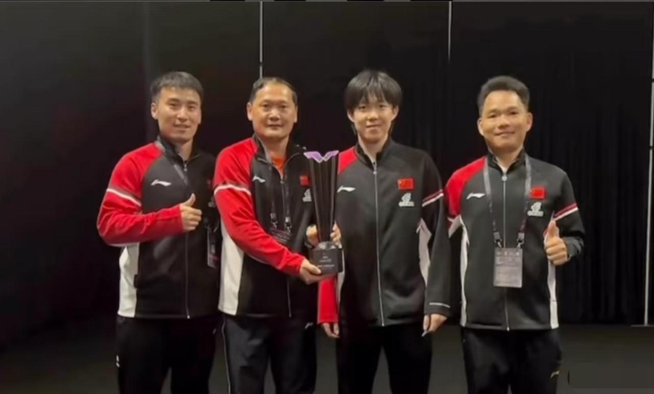 王楚钦真是感恩夺冠后和牛弟体能队医一起合影留念 王楚钦说过, 冠军杯不是一