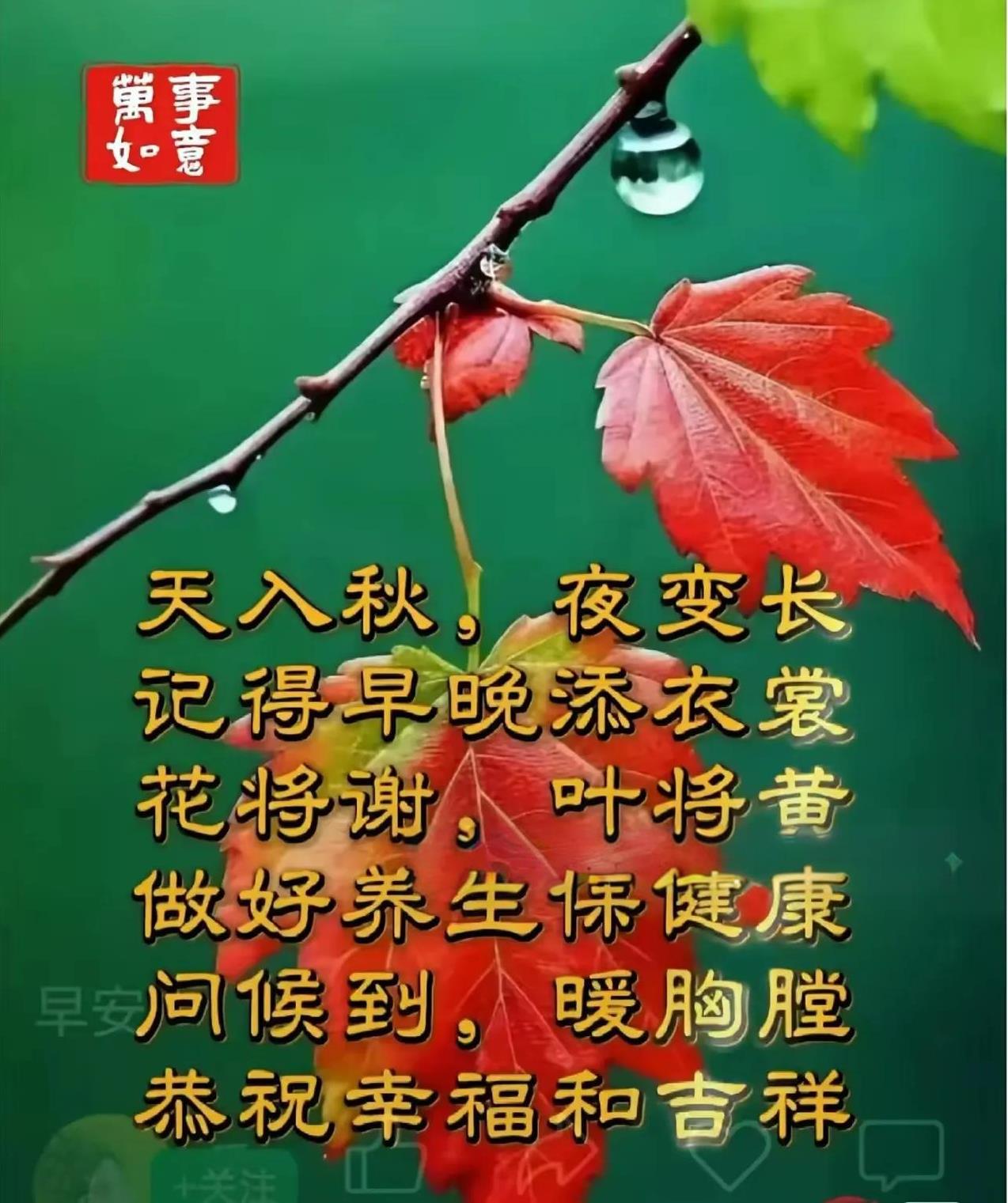 [玫瑰]早上好[玫瑰] 柿柿如意,早安吉祥 日出送你阳光, 月落送你梦想, 清晨送你希望, 每天送你健康, [太阳][玫瑰][心][微风] 人生一世何所求, 知足常乐方无忧 只要留得健康在, 笑迎冬夏春与秋。 ##秋日生活打卡季##