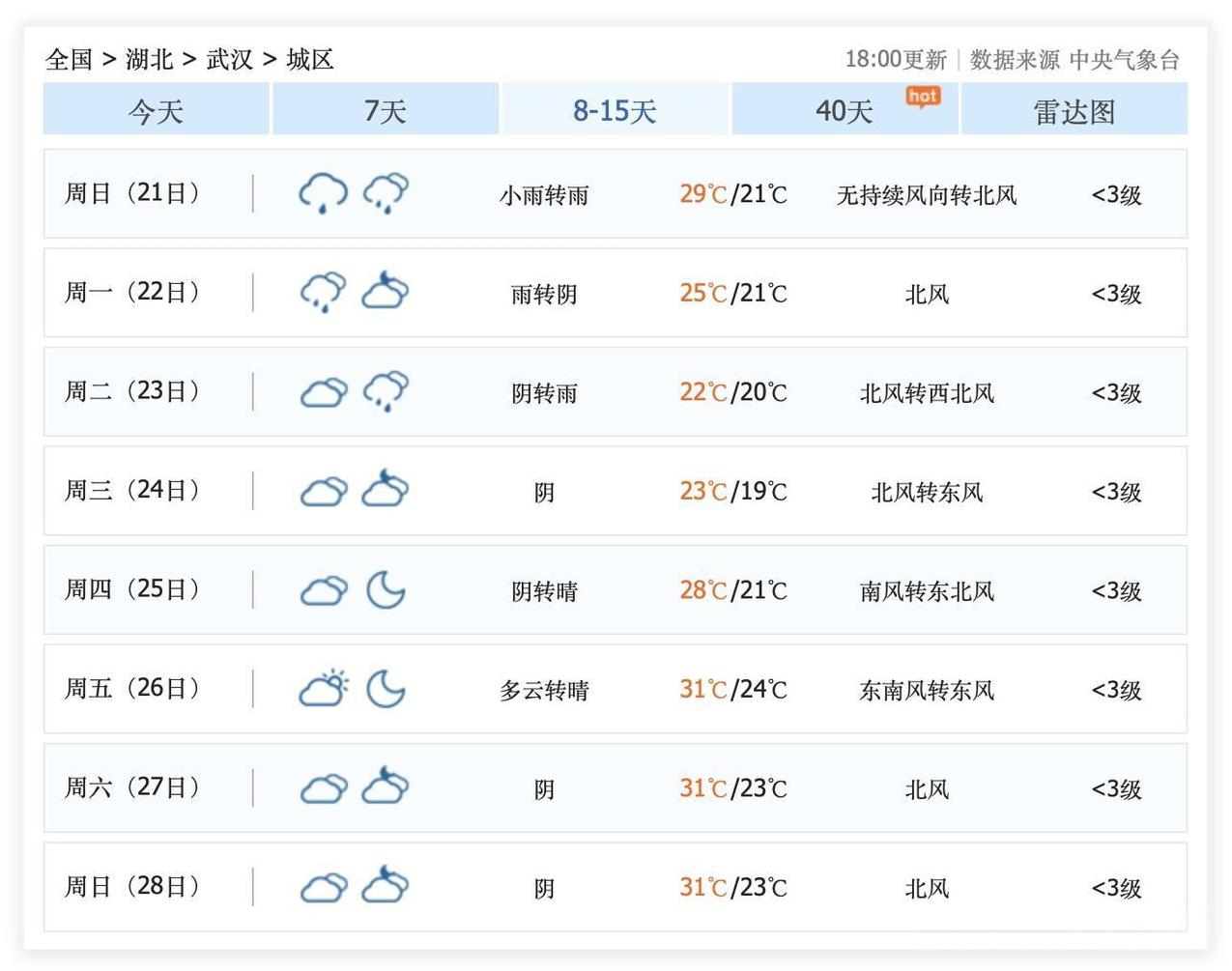 啊啊啊!9月15日和16日,湖北省武汉市,闷热,35度高温秋老虎又回来啦!武汉人,又要必须开空调啦!不过,好在,9月17日,武汉市下雨降温……9月17日到24日,武汉市阴雨连绵,气温低迷……还好还好! 湖北省武汉市……接下来……国庆节会是在如何的天气呢?!#光线摄影世界曾兰谈天说地#