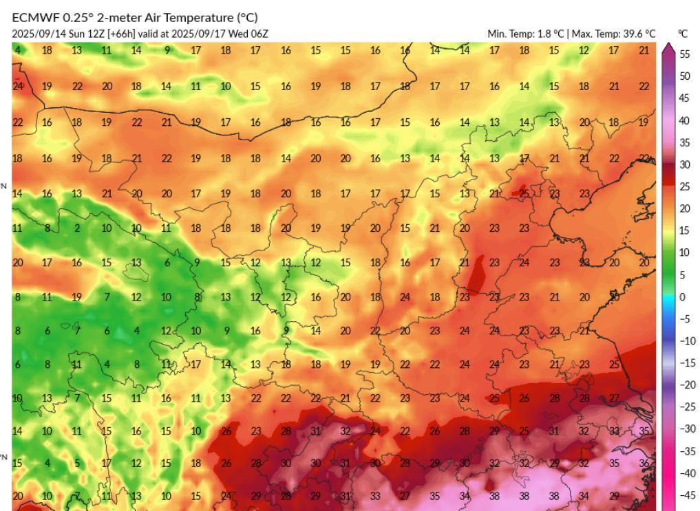 看来这一次的冷空气已经基本上没什么悬念了。从今天早上的天气图实况来看,目前冷空气已经在新疆北部以及外蒙境内。 受冷空气影响,9月17日不仅仅是东北会出现明显的降温,像湖北北部、河南、山东以及山西一带,都会有比较明显的降温 17 日北方有冷空气,但是南方不少地方还有副热带高压影响,从温度预报来看,像湖南、江西一带局部区域依然有可能在35~37 度左右。 从云量预报来看,9月17日湖南、江西、浙江、福建、广东、广西一带云量都比较少,天气较为晴好,贵州到重庆一带,因为处于暖湿气流的边缘,有一些云层覆盖。 由于受到冷暖气流的共同影响。9月17日 四川中东部、陕西南部、河南以及山东一带有降雨,其中山西一带降雨比较明显。 冷空气一来,天气就是你在北方裹着貂 ,我在南方露着腰,北方有的地方已经开始供暖了,但是在南方,还有很多地方都是户外免费供暖模式。