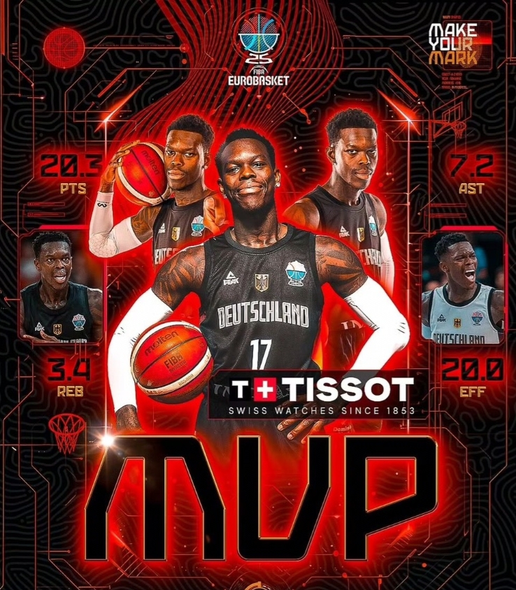 施罗德关键时刻连续两记进球,帮助德国男篮88-83战胜土耳其,时隔32年重夺男篮欧洲杯冠军,施罗德以场均20.9分3.5篮板6.6助攻,投篮命中率46.3%,三分球命中率32.8%,荣获欧锦赛MVP!!!🏅