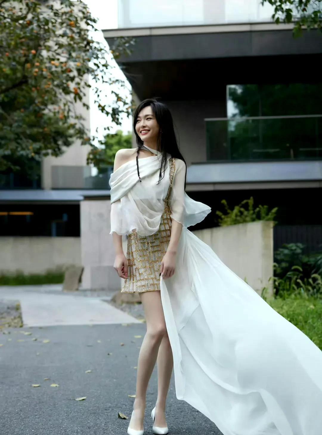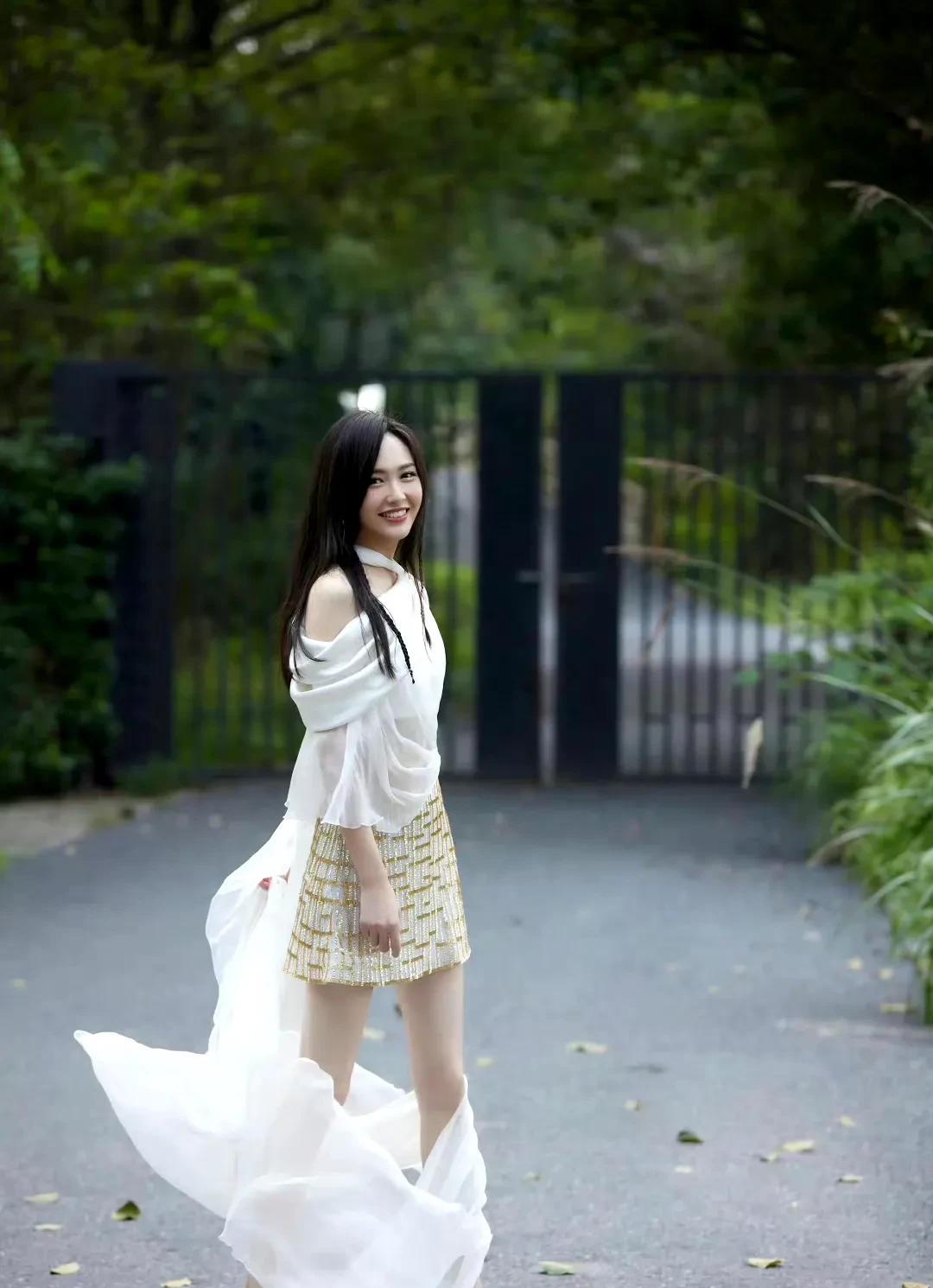 唐嫣这组夏日写真绝了!她身穿金色编织短裙,搭配设计感十足的白色飘纱上衣,身飘白色丝带,衣袂飘飘,美成了风景。 不对称剪裁的上衣露出精致肩颈线,薄纱随微风轻摆,自带诗意。纯净白与精致金碰撞,将法式浪漫和时尚摩登融合得恰到好处。 户外绿意朦胧的小径、简约现代的建筑作背景,她笑起来眉眼弯弯,松弛感直接拉满。从《仙剑》里灵动的紫萱到如今气质女神,40 + 的她状态能打,时尚感从未掉线,真是内娱氛围感美人代表,狠狠期待她下次造型了!