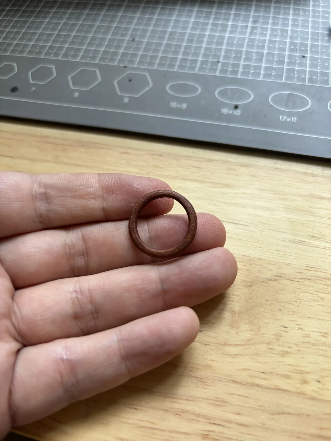 上午收东西翻出一块木板,发现颜色和质地都不错,然后突发奇想做了个戒指,是不是自己也算手工博主了[笑哭R],记录下