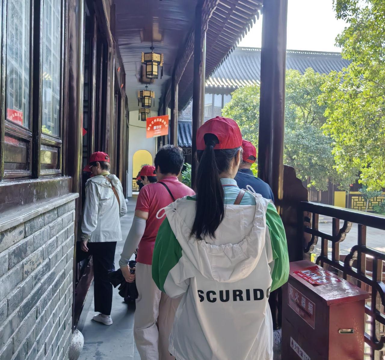 今天的人可真多啊!天宁寺迎来一拨又一拨客人。 看这些戴着红帽子的大爷大妈,来自苏