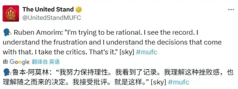 曼联换一个教练解决成绩,上赛季之所以对曼城一平一胜,奥纳纳后边出球很关键,今天对