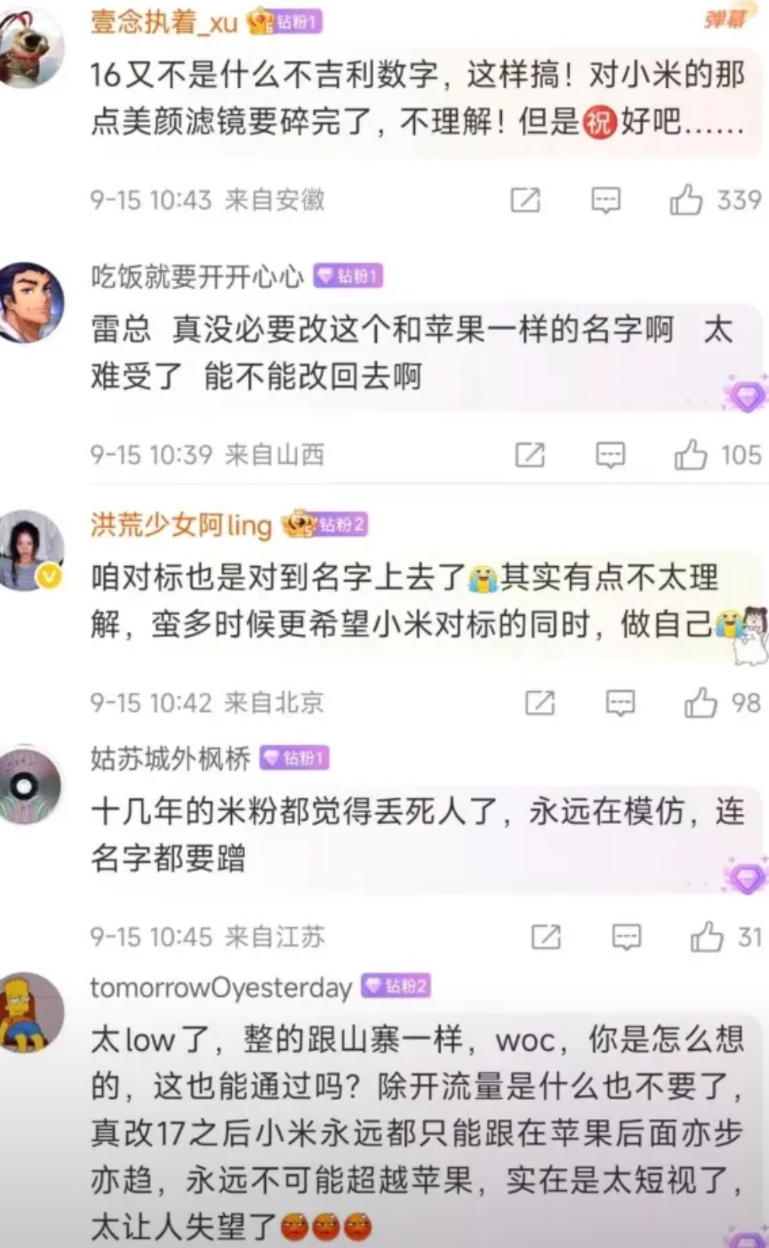 雷军怎么也没想到,不是说好小米的高端已经做起来了吗? 怎么就改个名字,现在就引起这么大的嘲讽? 今天,小米正式预告了小米旗舰手机,并且跳过16这个名字,直接叫17,全面对标苹果。本来小米全公司应该都认识这是一件大好事 结果微博上却一边倒的嘲讽小米,说小米说的对标苹果原来是名字对标,不光标准版一样的名字,连pro、promax都完全一样的名字。 这也难怪,小米这一年确实走的很不错,小米15总体卖的很不错,小米手机也在国内排行第二名,小米汽车更是牛,直接成为最热门的20万+的汽车。 结果没想到小米新手机就因为直接对标17被大家嘲讽不自信,全面看齐苹果,恐怕这一点连雷军都没想到吧,你们说,小米这么搞,到底是怎么对标的?