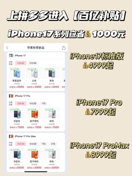 📱 iPhone 17惊喜价低至4999元,新品开售至高直降1000元!