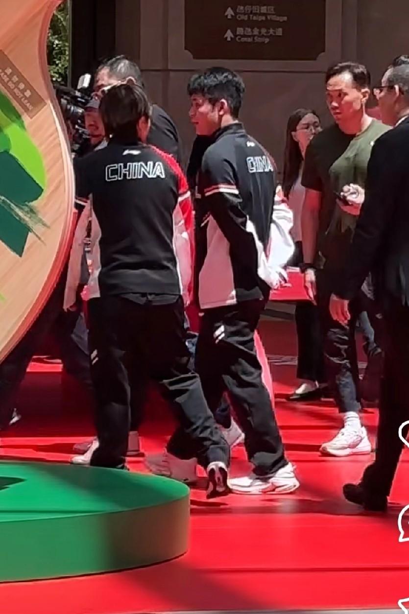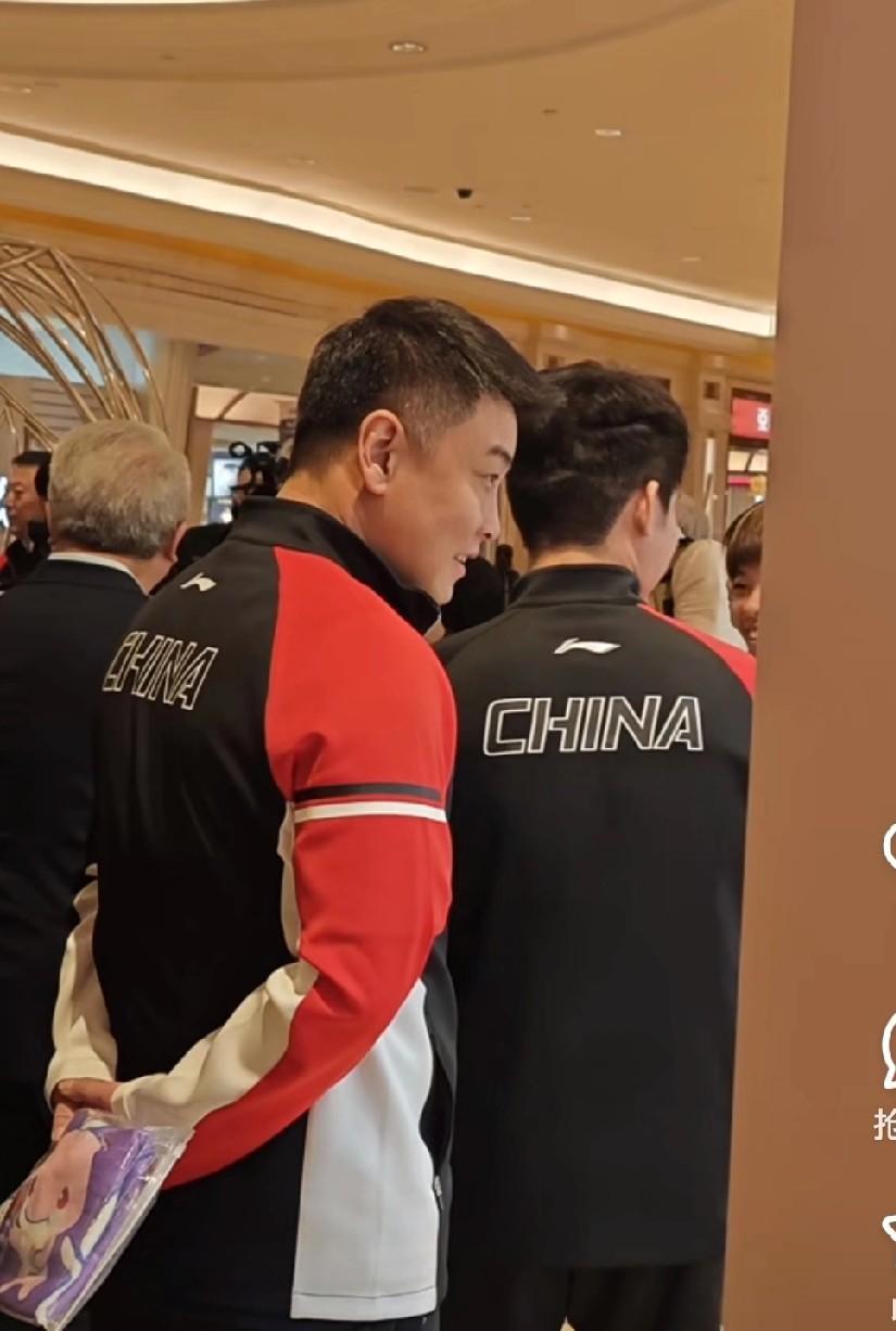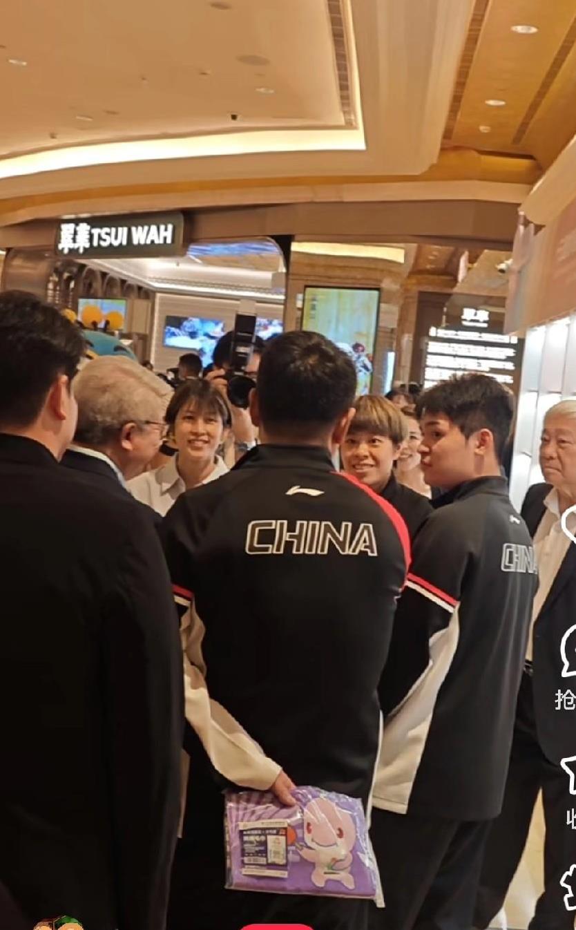 国乒还没有离开澳门呢。 刚刚看到有在澳门的博主分享说在银河偶遇了马琳和王皓,运动员只看到林诗栋和大迪,看起来是在参加活动,王皓手机这是拿着小礼物了吧。这次澳门冠军赛,国乒男单、女单都夺冠了,两位主教练的心情都不错。 那应该是王皓和马琳带着王艺迪和林诗栋出来了,其他人还在酒店休息吧。孙颖莎、王曼昱、王楚钦都是从比赛第一天打到最后一天,昨晚莎莎和曼昱的女单决赛是打满七局,两个人看着都很累了,一天两赛确实是身体有些吃不消。 看到有博主说国乒应该是今天下午回北京,他们比赛结束后一般不会隔天再回。估计一会儿就该出发了吧,回到北京后大家好好休息,看到WTT都已经开始发中国大满贯赛的到时间海报了,倒计时十天的海报人物是梁靖崑。时间过得很快,再过十多天他们了又要比赛了,比赛加油!