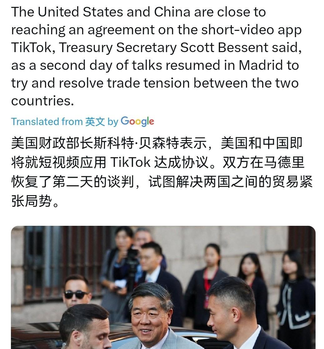 中美谈判之后,贝森特出来讲话了!美国财长贝森特坦言,中国提出了非常激进的想法!9月16日,根据外媒报道,美国财长贝森特表示,我们的中国同行提出了非常激进的要求,我们会看看目前能否达成目标。我们不愿意为了一款社交媒体应用而牺牲国家安全。 贝森特表示,即使未能就中国从 TikTok 撤资达成协议,也不会影响两国关系。最高层关系仍然非常好,格里尔大使和我本人对所有同行都表示高度尊重。此外,一位美国政府官员表示,谈判主要集中在 TikTok、关税和经济问题上,但没有提供更多细节。很显然,从贝森特透露出来的信息来看,美国方面明显认为我们不太好打交道。 贝森特声称,我们的中国同行提出了非常激进的要求,这隐含的信息是什么呢?这说明我们对于谈判进行了非常充分的准备,哪怕是中美经过了多轮谈判,我们根本不会对美国的无理要求让步,而我们同时也对美国开出了让美国感到为难的价码。这反过来说明什么呢?这更加说明美国在谈判前,以制裁的方式制造筹码,对我们完全没有用。 贝森特表示,我们会看看目前能否达成目标,这说明中美分歧仍旧是巨大的。当然,现在美国的豆农们很着急,美国联邦巡回上诉法院裁定,特朗普政府援引《国际紧急经济权力法》实施的多项“普遍性关税”越权、违法 ,这都说明特朗普政府正面临巨大的内部压力。因此,我们我们希望谈出一个结果,但单方面对美国让步,这绝无可能。