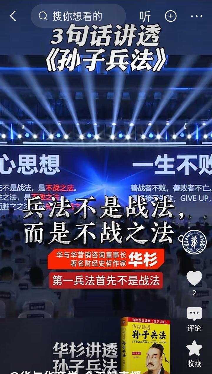 华与华老板自称兵法家?真是贻笑大方。出过一本讲解《孙子兵法》的书,就自封为兵法家。从古至今,能够称为兵法家的,都是有自成一家的军事思想理论。一个仅仅解读古人的兵法,并且没有仼何军事实战经历,这不是滑天下之大稽!不过,有一点值得肯定。他说”善战者不败“,这说的是罗永浩。下半句“善败者不亡",可能说的是自己。光速道歉,确实是"善败",至于亡不亡,估计以后很少有企业找他咨询。按照他的"不战之法",企业躺平就可以了,还进取个啥?