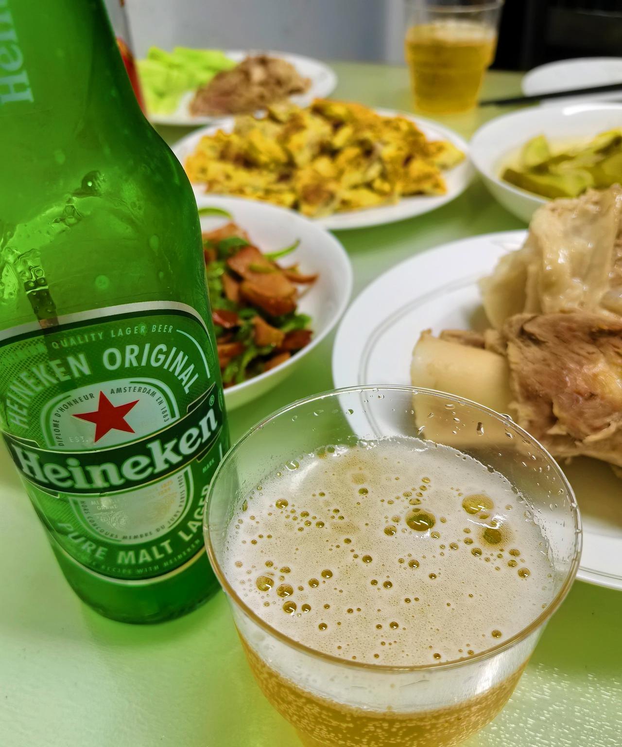 一桌小菜不太起眼儿,却是我和大姑姐的告别宴,我们俩互相给饯行。 又到大姑姐家吃饭了。姐夫去外地战友聚会,就我跟大姐两个人。 大姐明天要去青岛住一阵儿,她在那儿有房子,我过一阵也要回杭州,我们见不上面了。走之前,怎么着也得在一起吃顿饭啊。 本来打算请大姐到我家吃,但我常年不在家,家里的食材和佐料啥的都不全,买多了还得剩。所以又得让大姐受累了。 大姐煮了两个大骨棒,肉特别多。又做了6个小菜: 红肠炒青椒丝 肘子皮炖豆角 干肠松花蛋拼盘 自制酸黄瓜 蚵仔煎 熏肉黄瓜条(卷煎饼用) 荤素搭配得挺好。 相对于那种一咬就脱骨的精排,我更喜欢啃大骨棒!连肉带筋,煮得软烂,更有嚼头。 喝的喜力啤酒。姐夫喜欢喝这种纯进口的小瓶喜力,大姐一买就是两箱。她不怎么喝酒,最多一杯。 我俩连吃带喝带唠,就是觉得时间过得太快。 走的时候大姐给我拿的榴莲、鲜肉粽子,还有旱黄瓜、辣椒,这是她的园子里采摘的最后一波菜,已经是绝版了。 劳作了一整个夏天,大姐的农妇生活也告一段落,该好好歇歇了。这时候去青岛正好,人少景美蟹子肥。 告别之际依依不舍,我和大姐紧紧拥抱,我又落泪了。除了妈妈,哈尔滨我最想念的人就是我大姑姐。祝亲爱的大姐度假愉快,我们明年再见。[祈祷][比心]