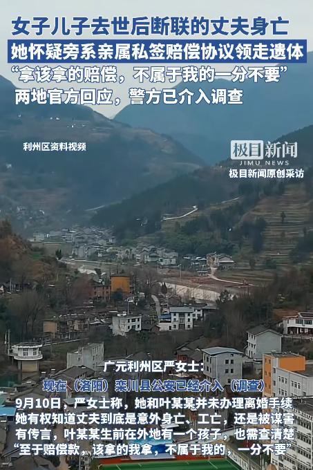 四川广元,一男子外出务工十多年与妻子断联。妻子一个人把孩子养大,可孩子竟然在帮家里干农活时不幸身亡,男子回家参加孩子葬礼后再次离去,依旧与妻子断联。两年后,妻子收到了男子在外地去世的消息,而男子的侄子侄女却悄悄领走了男子的遗体和赔偿金。妻子找上侄子侄女,但侄子侄女却表示:死的是我们家的人,拿钱的肯定也是我们家的人,和你这个外人没半毛钱关系! 9月12日,极目新闻报道了一则消息,引发了不少人的讨论。 严女士和丈夫结婚已经整整25年,这四分之一世纪里,他们经历了许多风风雨雨。 由于丈夫的工作性质特殊,需要长期驻外或者调动频繁,两人的生活一直是两地分居,每次团聚都显得格外珍贵,而每次离别又让人倍感思念。 当年结婚的时候,条件并不像现在这样便利,婚姻登记也没有电子系统可用,他们的结婚证还是手写的,证书上,墨迹清晰却带着些许笨拙的笔触,仿佛记录着那个年代婚姻的纯朴与真实。 拿到手的那一刻,严女士心里既激动又紧张,她记得丈夫握着她的手,轻轻说了一句:“无论多远,我都会回到你身边。” 但是意外终究还是发生了,她们的儿子在两年前因为一场意外去世了,丈夫前段时间也意外失联,之后再得到的消息就是丈夫去世了... 面对这突如其来的死亡,严女士有些不明所以,她不知道丈夫是怎么去世的,意外还是谋 s,如果是意外那赔偿款在哪里? 严女士心里七上八下,几天来辗转反复思考,不由得怀疑起丈夫的侄子侄女,她猜测,也许是他们趁自己不注意,悄悄把丈夫的遗体处理掉,并且拿走了赔偿金。 于是,她鼓起勇气,直接去找丈夫的侄子侄女,她开口说道:“我只是想知道,你们是不是拿走了叔叔的赔偿金?” 然而,侄子侄女的回应如同当头一棒,他们说:“死的是我们家的人,拿钱的肯定也是我们家的人,和你这个外人没有半毛钱关系!你别再搅和了。” 严女士想到了他们会这么说,于是拿出了那份纸质的结婚证,但是在丈夫的侄子侄女看来,这张纸的分量,早就被十几年不闻不问的日子给冲淡了。 眼看着两人不讲理,无奈之下,严女士只能选择报警,她说:我只想拿回属于我的钱,不属于我的,我一分不要。 好在,河南栾川的警察已经跨省介入,调查方向直指叶某的真正死因,目前严女士也正在等待着消息。 有人说:首先他们离婚了没,如果离婚了就算再多的赔偿金跟你也没关系,如果没离婚你为啥断联多年,他活着的时候你抛弃他他死了你来要赔偿金。 虽然法律允许但天理难容,如果这女人拿到赔偿金真是颠覆了人的三观。 信息来源:极目新闻