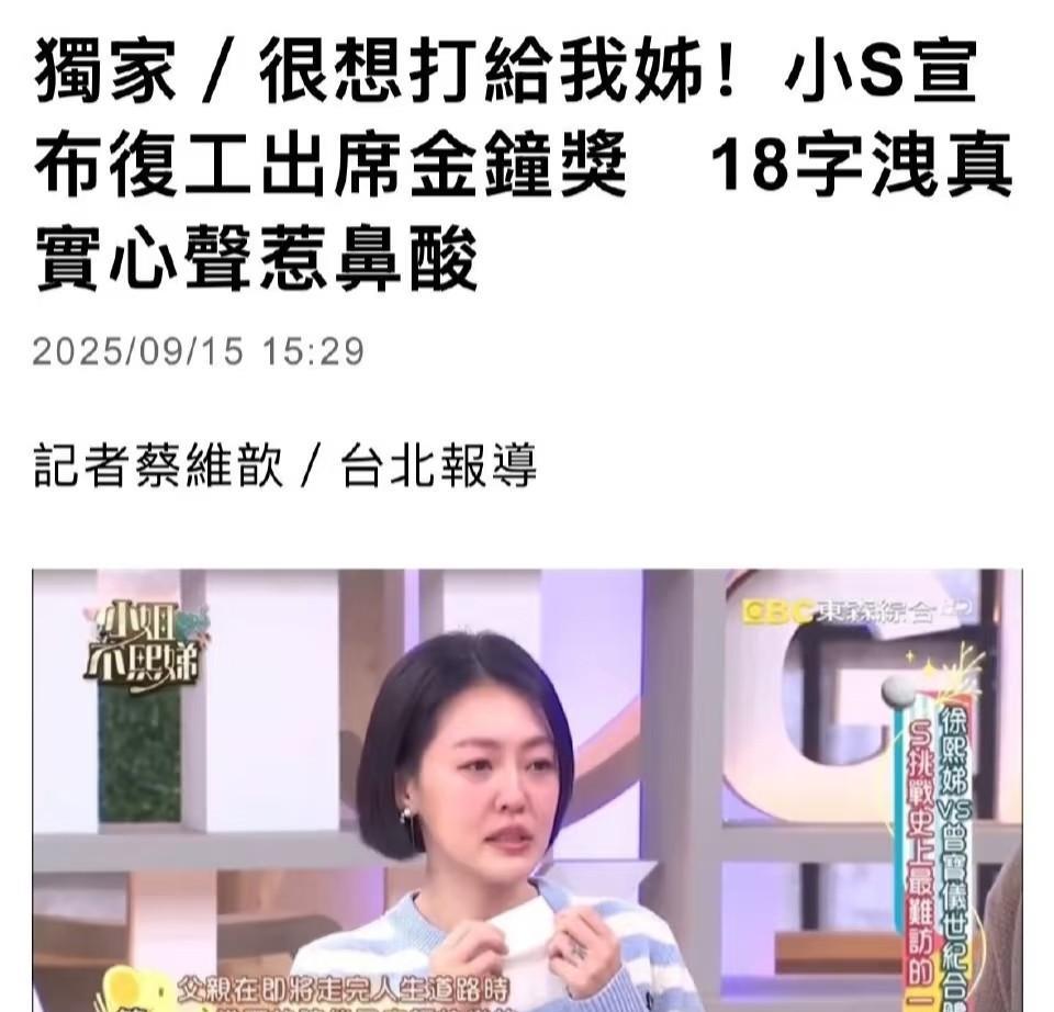 沉默多日,小S再提姐姐大S,终于做了一个正确的决定,为了姐姐她要参加金钟奖,小S