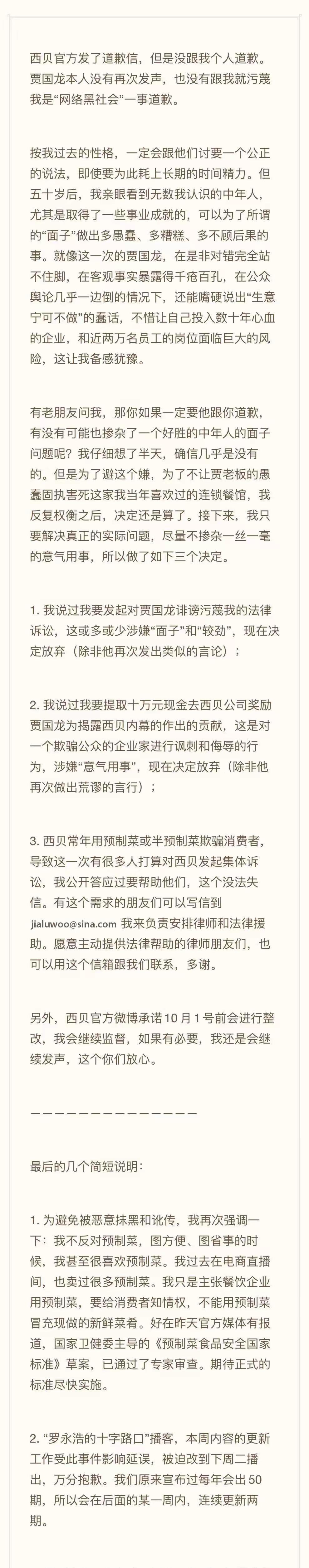 看回复,收西贝钱的不少啊,贾老板下血本了