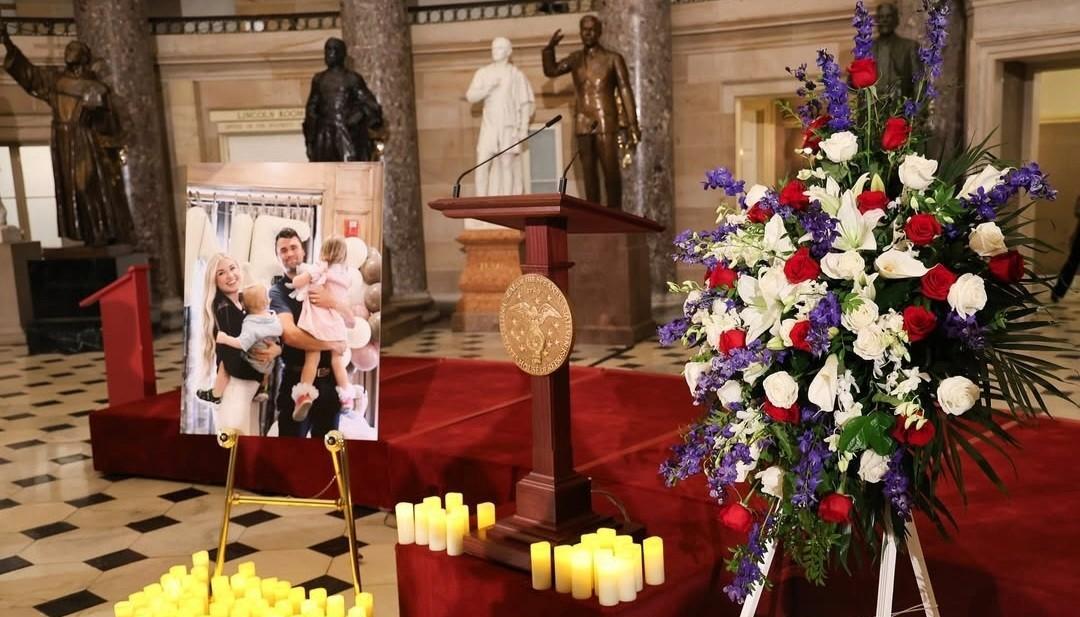 美国众议院议长迈克·约翰逊今天与其他议员一起参加了对查理·柯克的悼念。他带领议员