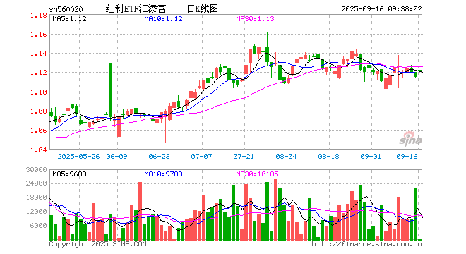 9月16日,红利ETF汇添富(560020)开盘涨0.63%,报1.122元。红利ETF汇添富(560020)重仓股方面,中远海控开盘涨0.00%,冀中能源涨0.84%,宁波华翔涨0.96%,中信银行跌0.26%,成都银行涨0.44%,海澜之家涨0.00%,兴业银行涨0.05%,大秦铁路涨0.00%,江苏银行跌0.29%,交通银行跌0.28%。
