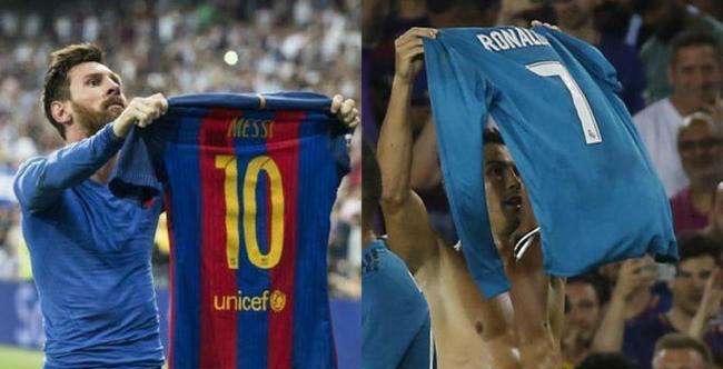 C罗粉丝:巴塞罗那球员进球后模仿我罗的庆祝动作。你永远不会看到皇马球员为梅西做这一点。 我没记错的话,2017年西超杯首回合,C罗在进球后就模仿了梅西的“晒球衣”名场面,他的东施效颦吃了黄牌。几分钟后,C罗又因为跳水吃了第二张黄牌,被罚下场。 C罗不是皇马球员?