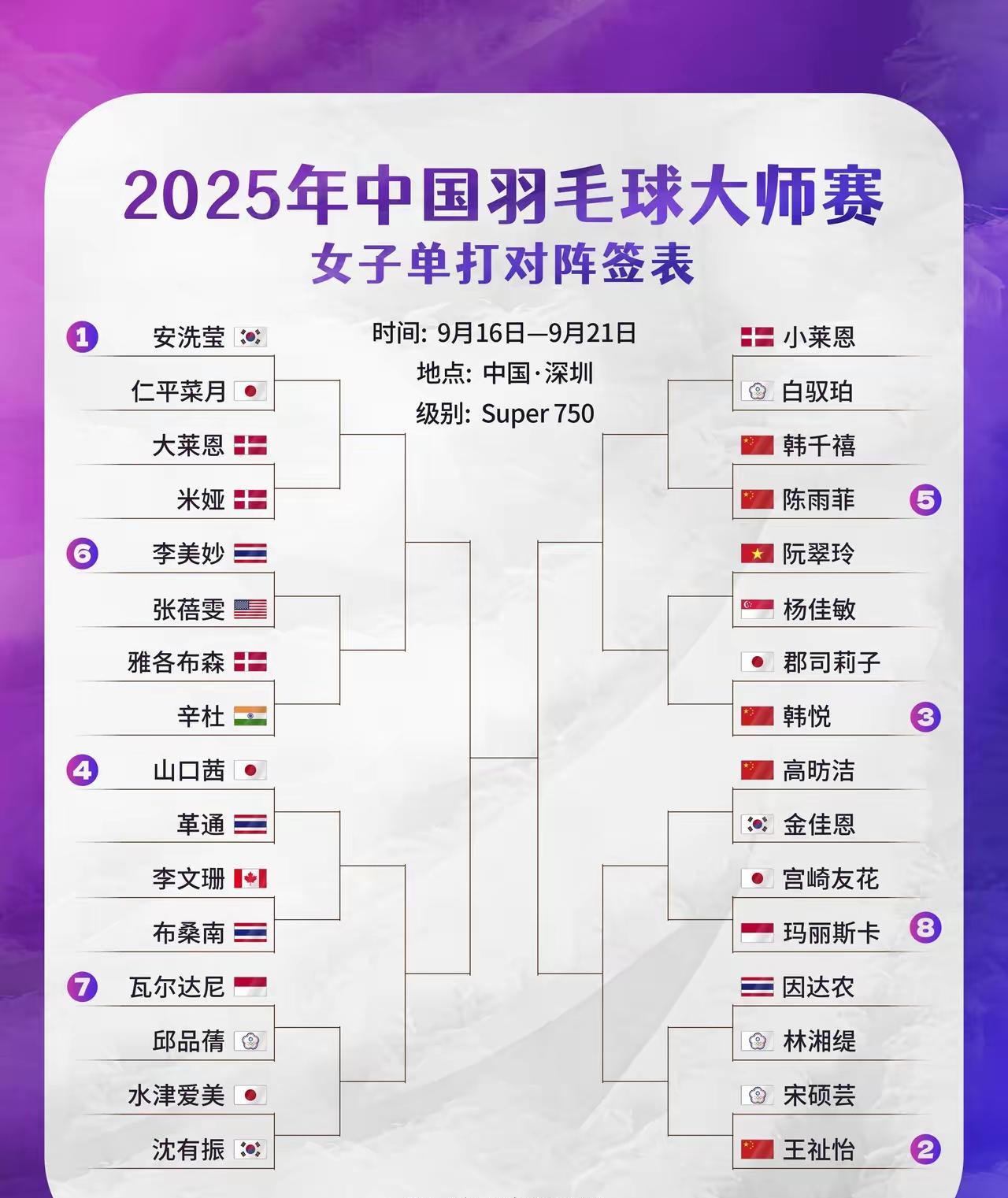 国羽遭针对?陈雨菲中国大师赛这是什么签呀!!! 国际羽联2025中国大师赛今日开赛,一看到女单的签表,简直令人咋舌,虽拥东道主之利,五朵金花却全扎堆下半区? 陈雨菲更是陷入内战陷阱,首轮对阵韩千禧,不出意外,1/4决赛将迎战韩悦,如想再看到“安菲大战”,半决赛还必须过了王祉怡! 不得不说,这次安洗莹签运真好,基本保送决赛!