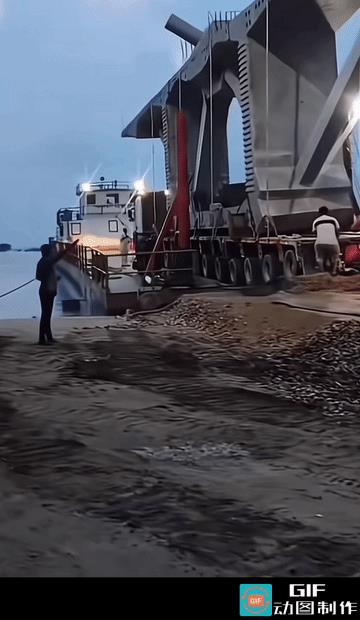 这种桥梁正规操作应该是用港口塔机吊装上船! 然后吊装下船上车再运输! 但印度工程
