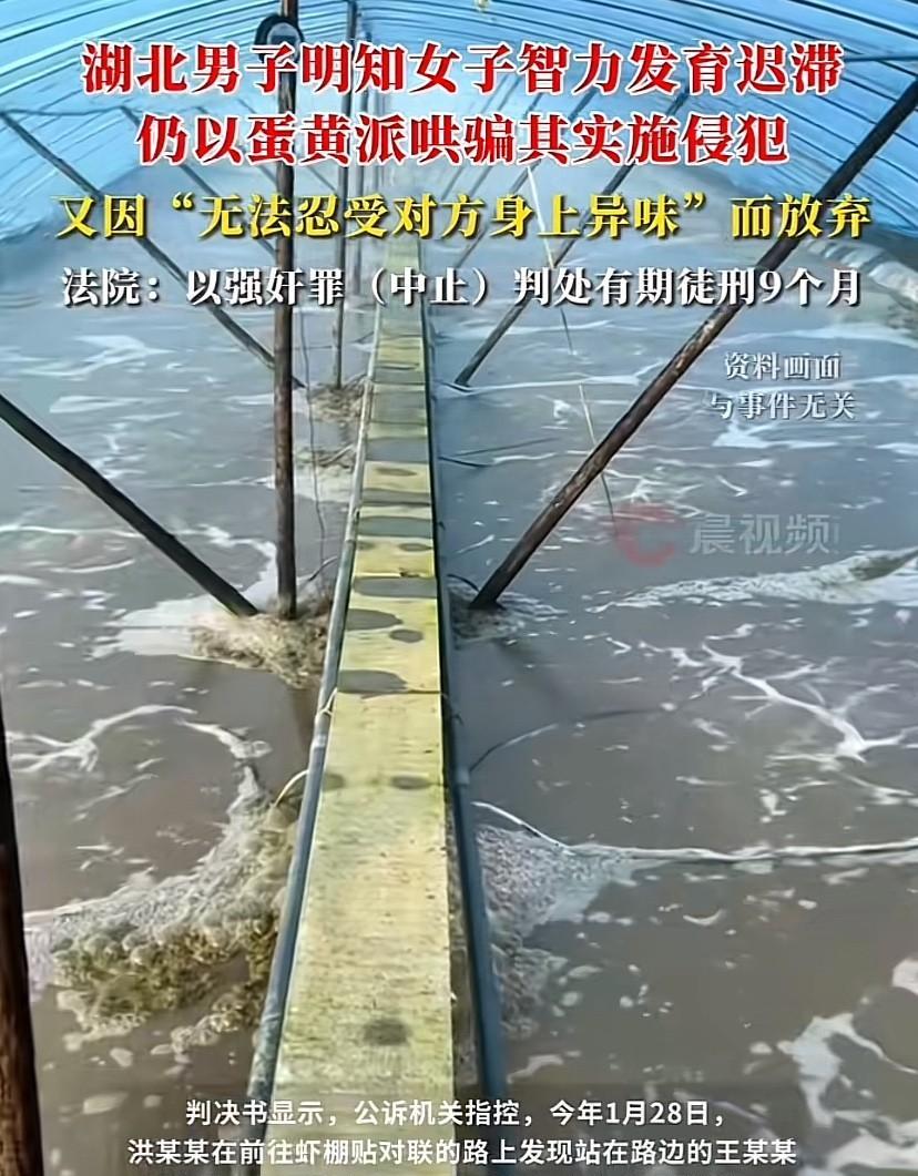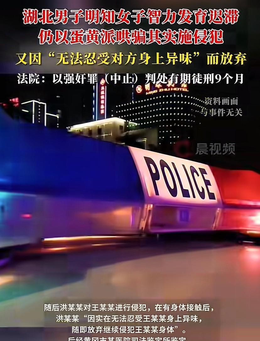 湖北黄梅,一68岁老大爷除夕当天去自己的虾棚贴对联,路上看到一名年轻女子独自站在路边,举止不太正常,于是起了色心,而后将对方骗至自家的虾棚,又拿蛋黄派哄骗对方上床休息,欲侵犯对方。不过,随后,与对方身体接触后,发现对方身上有异味,因实在受不了最终放弃侵犯对方。虽然如此,老大爷还是悲剧了,不仅赔偿对方家属1000元才取得谅解,还被判处有期徒刑9个月。 据悉,去年除夕当天早晨8点,68岁的男子洪某骑着摩托车从家出门,打算到自家的虾塘贴对联。 途中,洪某看到一名年轻女子站在路边。 因女子的行为举止不太正常,一看就是智力有问题,再加之赶上除夕,又是村道,路上的人比较少,洪某便起了色心,产生了与对方发生关系的想法。 随后洪某骑车接近对方,几句话便将对方骗上自己的车,将对方带到自家的虾棚后,又拿蛋黄派哄骗对方到自家虾棚内的床上休息。 洪某而后开始着实侵犯对方,怎料,起初遭到对方反抗时洪某并没有放弃,而后在下体与对方下体接触后,发现对方身上有异味,觉得实在受不了,放弃侵犯对方。 事后,洪某骑车将对方带离自己的虾棚丢在一村道上,独自离开。 而同一时间,女子的丈夫发现女子外出不见了后正在四处寻找女子,找了一圈后,正巧在前述村道附近找到女子,案发! 如何评价洪某的行为? 具体到本案,经鉴定受害女子患有中度精神发育迟滞,法律能力评定为:本案中无性防卫能力。洪某明知受害女子精神不正常,智力发育迟滞,不能正确表达自己意志且不具备性防卫能力,仍然企图与受害女子发生关系,已然构成强 奸罪。 2、根据相关司法解释的规定,在洪某所涉嫌的犯罪中,根据受害女性的年龄不同,既遂的认定标准也不一样。 如果受害女性是未满14周岁的少女,则采用较为严格的“接触说”,而如果受害妇女已满14周岁,则采用较为宽松的“插入说”。 具体到本案,虽然洪某与受害女子的身体进行了接触,但不能算既遂。 3、根据犯罪目的未达成原因的不同,又分为犯罪未遂和犯罪中止。 《刑法》第23条规定,已经着手实行犯罪,由于犯罪分子意志以外的原因而未得逞的,是犯罪未遂。对于未遂犯,可以比照既遂犯从轻或者减轻处罚。 第24条规定,在犯罪过程中,自动放弃犯罪或者自动有效地防止犯罪结果发生的,是犯罪中止。对于中止犯,没有造成损害的,应当免除处罚;造成损害的,应当减轻处罚。 具体到本案,洪某在已经着手实行犯罪过程中,因无法忍受受害女子身上的味道,自动放弃了犯罪,很显然属于犯罪中止,依法应当减轻处罚。 4、而据悉,事发后,洪某的家属给了女子丈夫1000元,女子丈夫出具了收条及谅解书。 根据《两高常见犯罪的量刑指导意见试行》规定,对于积极赔偿被害人经济损失并取得谅解的,综合考虑犯罪性质、赔偿数额、赔偿能力以及认罪悔罪表现等情况,可以减少基准刑的40%以下;积极赔偿但没有取得谅解的,可以减少基准刑的30%以下;尽管没有赔偿,但取得谅解的,可以减少基准刑的20%以下。 再加之洪某是初犯,案发后,自愿如实供述自己的罪行,构成坦白;承认指控的犯罪事实,愿意接受处罚,即认罪认罚,还可以依法从宽处理。 法院审理后,最终判决洪某构成强 奸罪,有期徒刑9个月。 5、最后,68岁的洪某因为一时糊涂“晚节不保”,其实不仅害了自己,还会影响子孙后代的工作和生活! 其案件也再次提醒广大朋友们,色字头上一把刀,无论是什么时候,都要尊重女性!守住道德、法律的底线! 这事您怎么看?欢迎在评论区留言,与大家一起交流您的看法! ------ 关注@安律说法 案例中看人生百态,法律中寻破局之法!