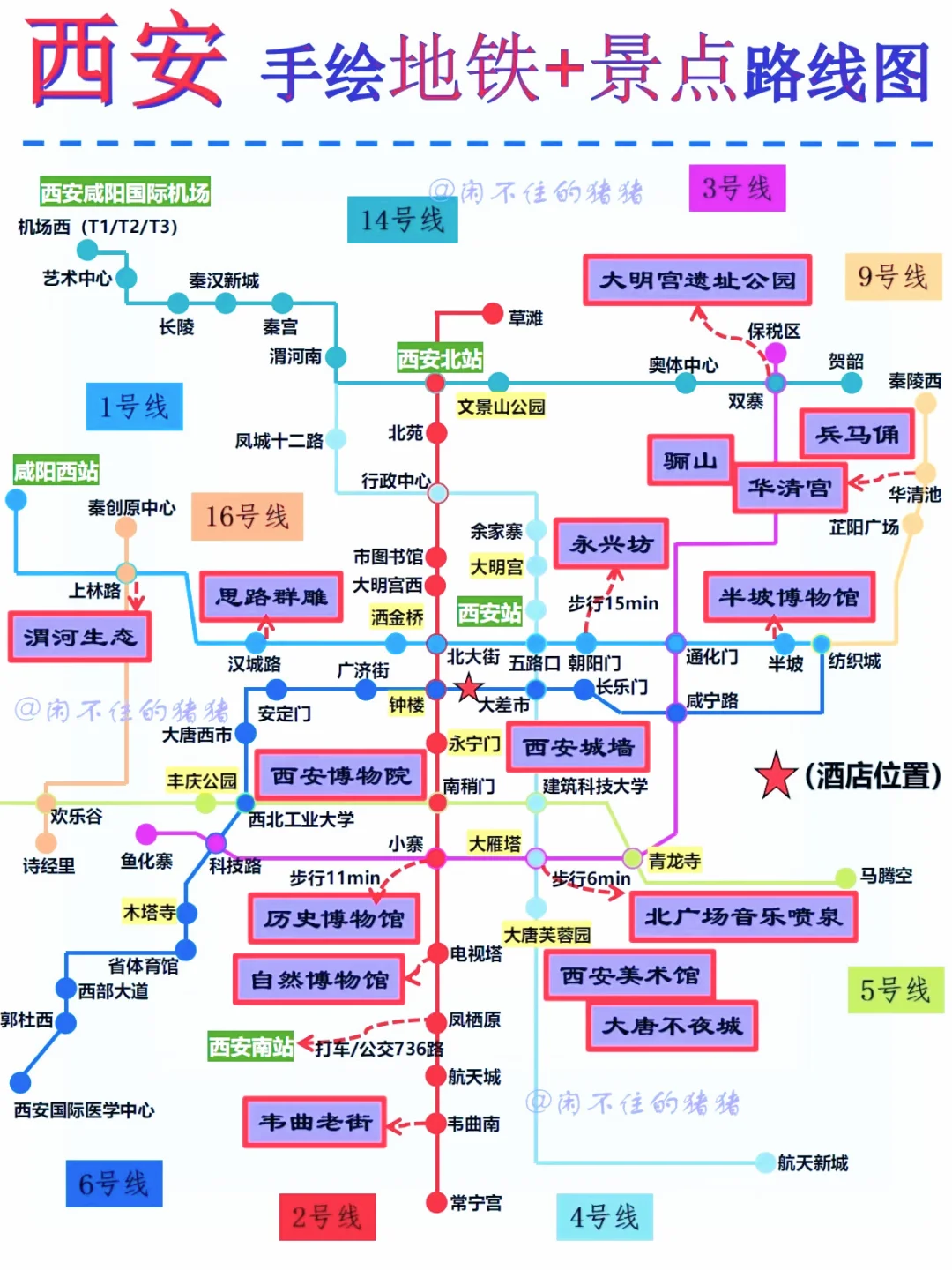 ✅图8是西安地铁和景点分布图,大家可以根据这张图参考着来规划每天行程💗
