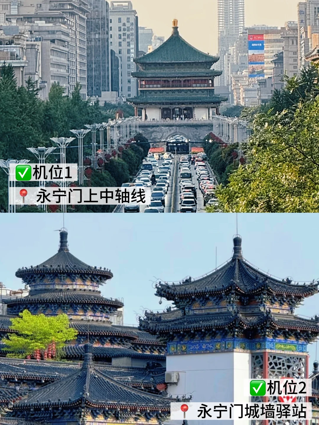 ✅一日游路线:大雁塔➡️陕西历史博物馆➡️小雁塔、西安博物院➡️西安城墙➡️钟楼、鼓楼(仅拍照)➡️回民街