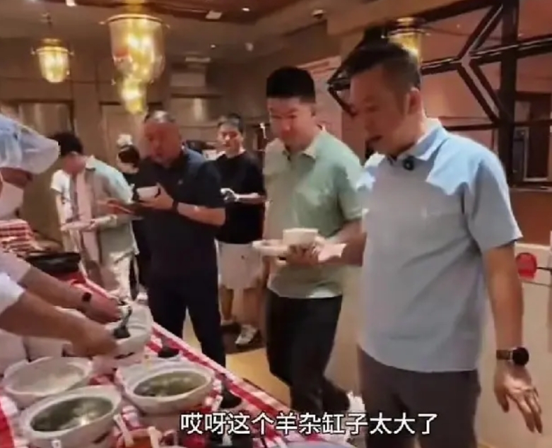 这是贾老板自己店铺菜品品鉴会上,贾老板端个碗面对几十道菜拿个碗瞎晃悠,只看到了傲慢,面对一大桌菜应该就吃了现炒的鸡蛋和听说是鲜炒的大盘鸡尝了一口。自己店铺的东西自己都不敢吃,还指望别人去消费吗? 不曝光什么事也没有,自从开放后厨之后,真是让观众和食客大开眼界啊。不管他在哪个场合面对员工的时候总是显示出特别傲慢的神情,情商之低堪忧啊!