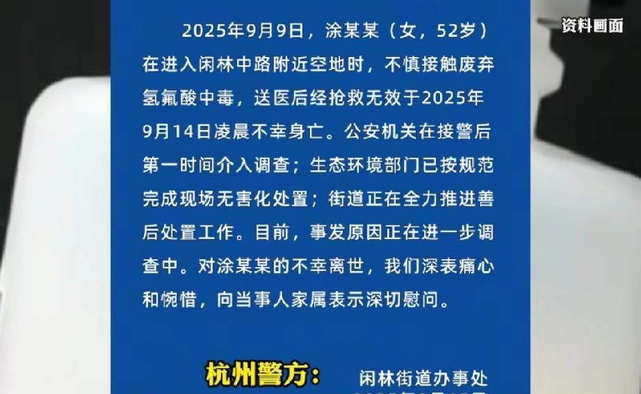 52岁女子化骨水死亡,事发地又挖出2壶,警方初步判断非恶意投放,理由很简单:那东西废弃很久,塑料壶都老化了。只能说不幸身亡的女子太倒霉! 女子是9月9日在店铺后山散步时出事的,那里并不是公园,而是很早就征收拆迁的地方,只是一直以来没有动工,也没有围起来,就这样废弃着。附近的居民变废为宝,有的种菜,有的经常去遛弯,谁能想到那里有氢氟酸这样的毒物。 化骨水装在类似老式洗洁精塑料壶里,由于长时间的风化作用,塑料壶变得非常脆弱,女子一时不察一脚踩入,整只脚陷了进去,另一只脚也被溅起的液体伤害,当场就走不了了,送医抢救多天后去世。 这玩意之所以被称为化骨水,就是因为对骨头的伤害特别大,强腐蚀、穿透性和剧毒,让人听名字就望而生畏! 为了弄清楚事情真相,同时保护好其他民众,警察连夜出动仔仔细细找了多遍,还真的又挖出了同样的2壶,这要是让其他人碰到,后果不堪设想。 之前就有网友猜测,是不是有人故意投放害人,毕竟一切太过匪夷所思了。不过从事发地情况和壶的老化程度看,应该是多年前有人遗留下来的,并非近期所为。 所以说女子也真的太倒霉了,平时散步都没事,其他人人来人往,还有人种菜也没碰到,偏偏她一脚踩破,沾染面积这么大,丢了性命。 最让人欣慰的是,当地官方认真负责,不仅仔细排查,还承诺会兜底,这也能让悲痛欲绝的女子家人稍稍慰藉! 这样的危险品以及易燃易爆等物品,是不能够随意乱放和丢弃的,不知原主人是忘记拿走,还是觉得没用就扔那儿了,总而言之要处理妥当,免得无心之失误伤他人…… 【关注@小讼言案 ,为您分享更多精彩】 (来源:大风新闻)