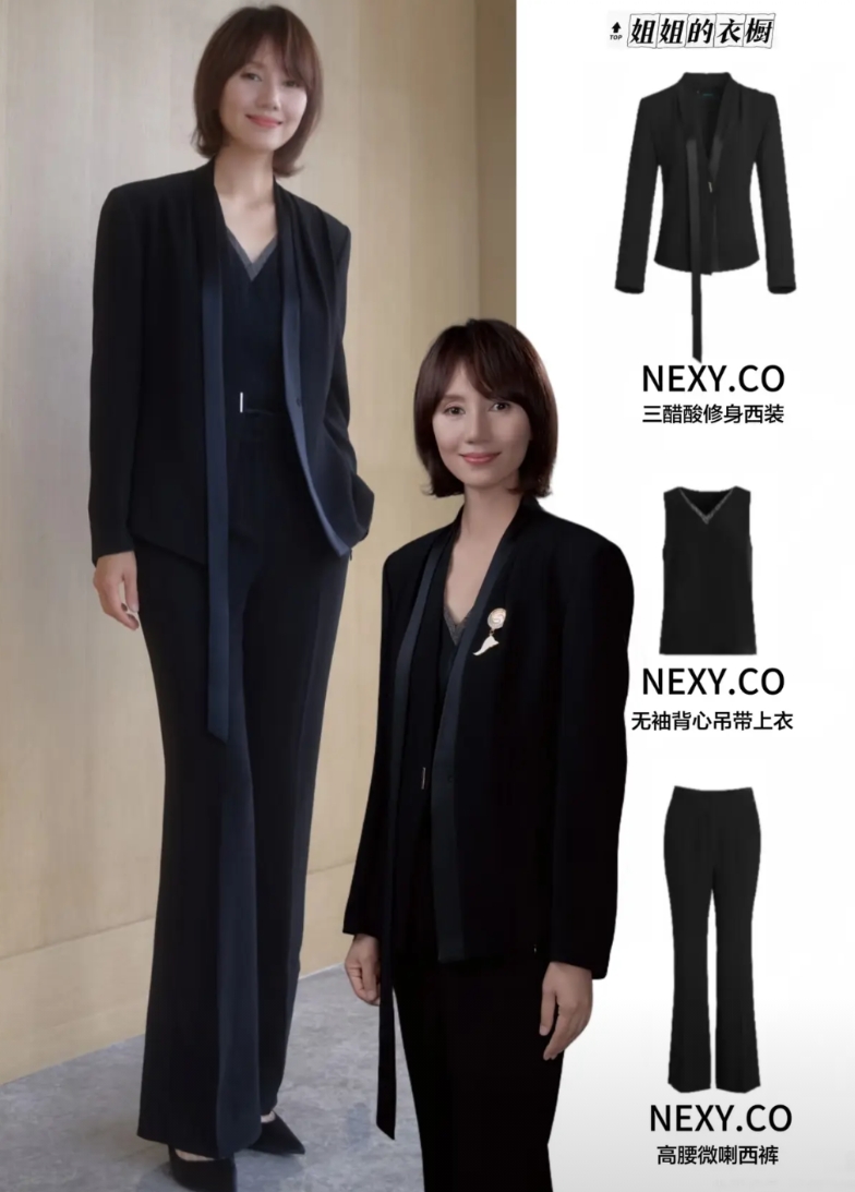 严重怀疑 袁泉很久才舍得露一面的目的,不是因为自己实力不允许,而是有点心疼女性朋友的钱包不给力。 万万没想到,她就在金熊猫奖上晃了一眼,女朋友们瞬间就着盯着她的照片停不下来,这黑色套装简直穿出了所有女人梦寐以求的感觉:优雅又不闷。 想买,想要!一万个心动…… 懂得都懂,女人看到长得好看,穿得好看,又能展现自身气质和特点的穿搭,真是想方设法的分分钟都想问同款。 这次也不例外,穿上NEXY.CO品牌的设计,尤其是这最基础的西装裤配上黑色无袖上衣,走路带风的感觉做梦都想拥有