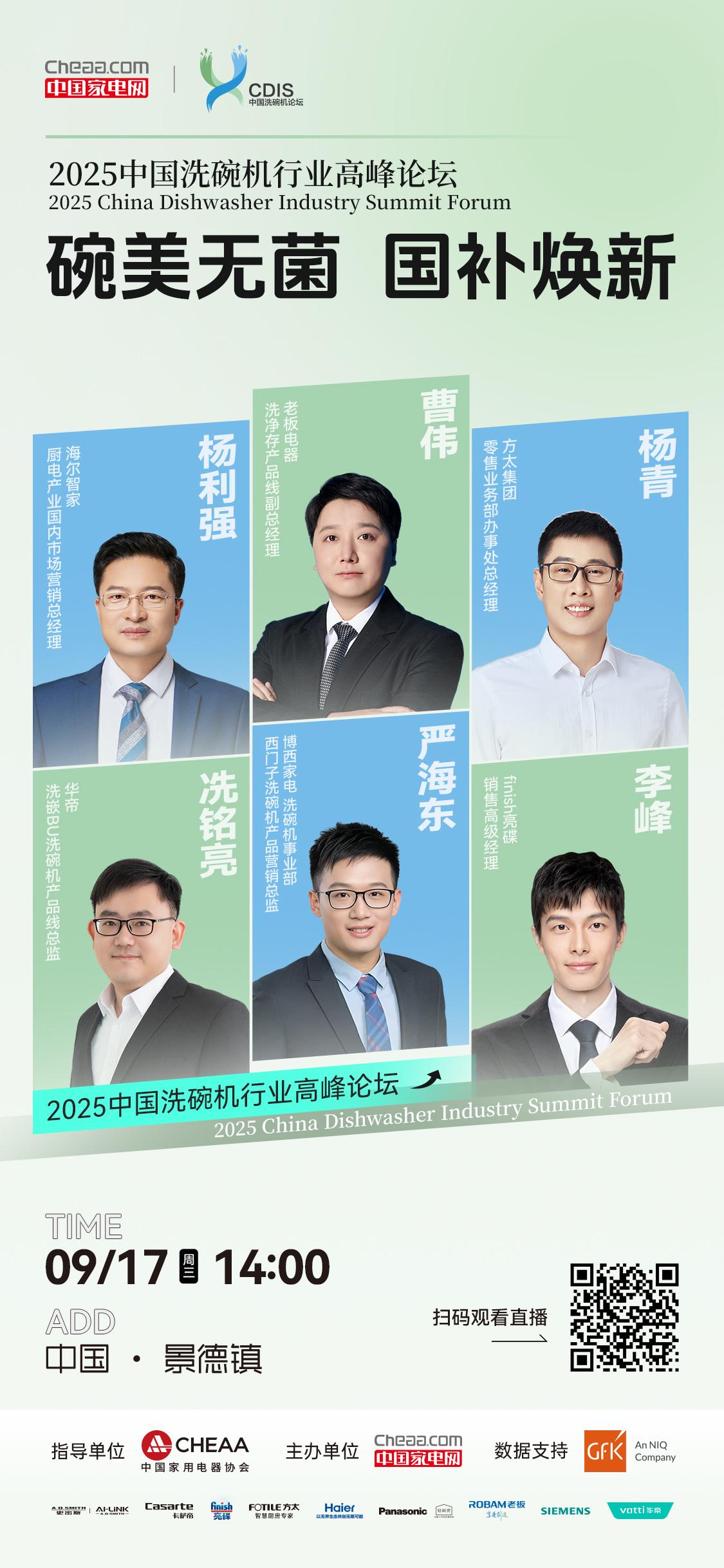 行业大咖云集千年瓷都,共探洗碗机行业发展新篇章~ 扫码关注,锁定直播间,一同见证! 9月17日 中国·景德镇