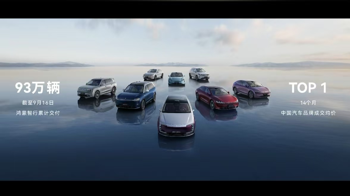 9 月 16 日,华为余承东正式宣布:鸿蒙智行累计交付突破 93 万台,连续 14 个月蝉联成交均价冠军。