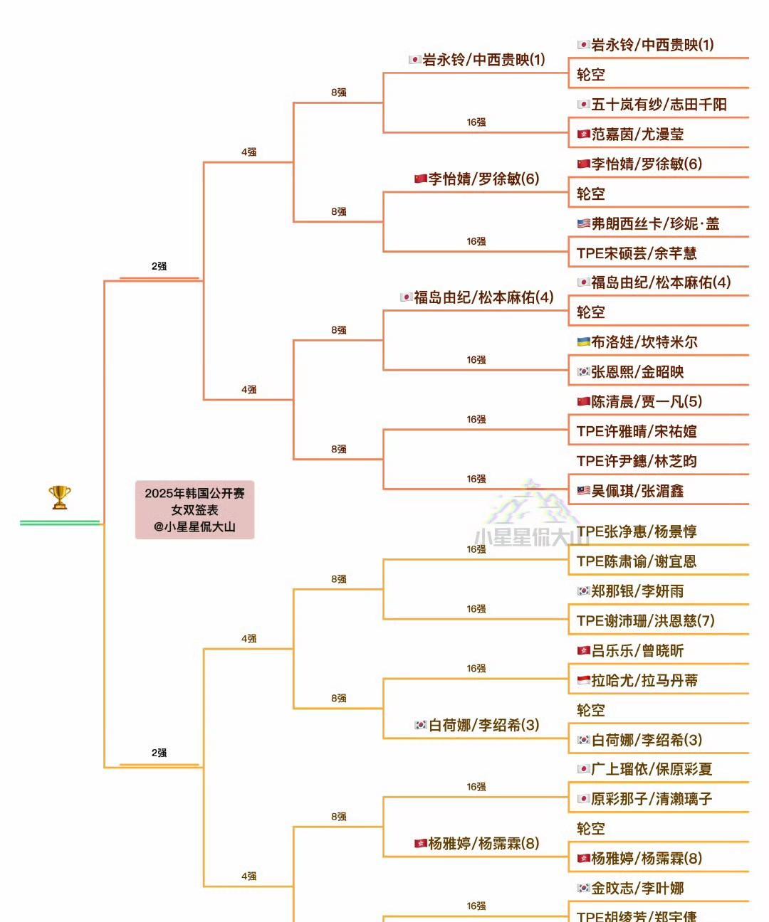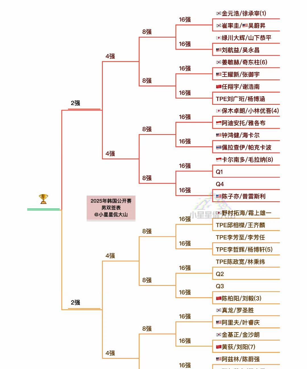 2025年韩国羽毛球公开赛签表发布! 韩国公开赛属于超级500赛,将于9月23日