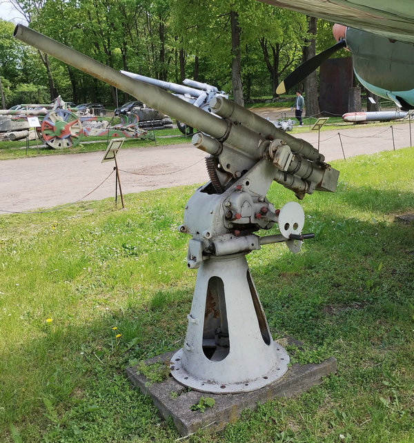 苏联海军45毫米21-K通用火炮,二战时期苏军舰艇的主要轻型防空火炮,也是小型舰艇和潜艇的主炮。 这种炮是1932型45毫米反坦克炮的海军型,后者又是德国莱茵金属37毫米反坦克炮的放大版。该炮的弹道特性略优于47毫米1888 型哈乞开斯火炮,1935年后引入了半自动炮闩,射击后可自动开闩退壳,实际射速为25至30发每分。该炮和45毫米反坦克炮通用弹药,也就是说它没有时间引信弹药,只有直接命中才能对飞机造成伤害,加上较低的射速,实际防空效果并不理想。 该炮1942年开始被37毫米70-K自动炮替代,但生产直到1947年才停止。 这就是苏联的手拉机。
