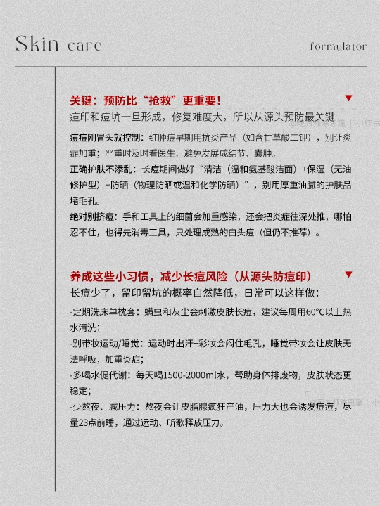 其实,对付痘印和痘坑的核心逻辑很简单:尽量减少长痘频率、一旦长痘就及时控制炎症、绝对别乱挤乱抠、同时做好防晒与修护。要知道,提前预防永远比后期费尽心机 “填坑” 要省力得多!