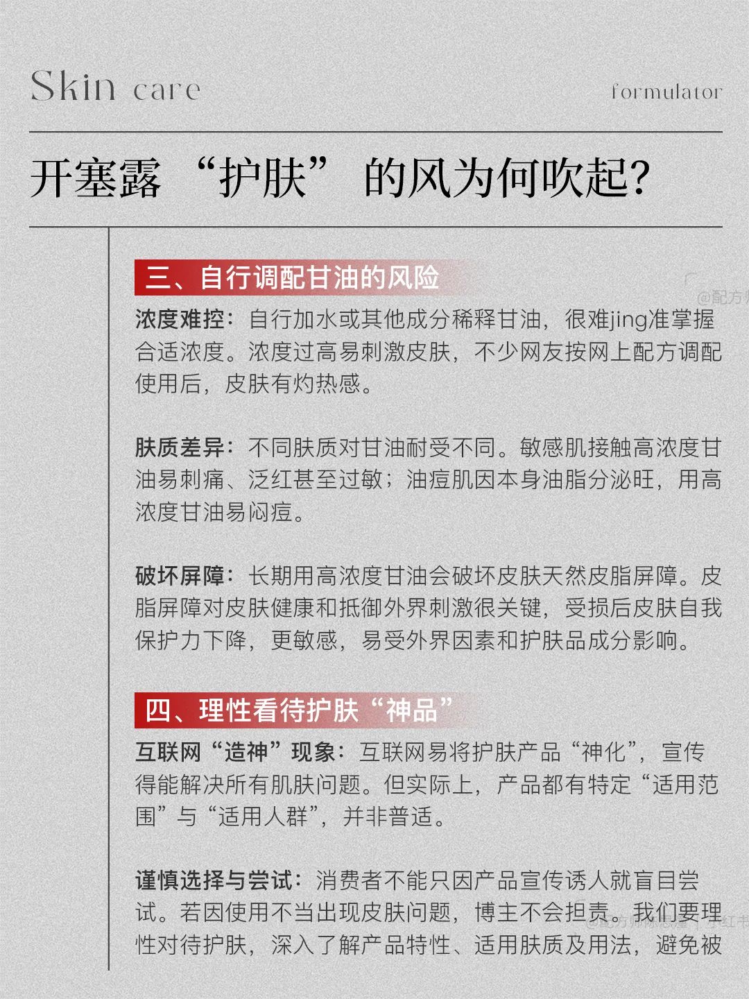 在互联网环境下,很容易出现将产品 “神化” 的情况。众多产品被宣传得效果超 凡,仿佛拥有解决所有肌肤问题的神 奇功效。然而,任何产品都有其特定的 “适用范围” 和 “适用人群”,并非适用于所有人。