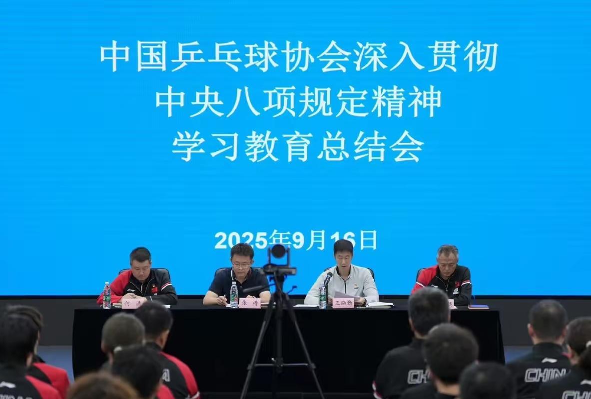 莎莎和楚钦回来就开会, 真的是一点顾不上休息。 其他队员还好一些, 莎莎楚钦打到最后一刻, 颁奖结束开新闻发布会, 半夜又去拍城市宣传照, 第二天晚上才落地北京, 大头还被女私生给吓到。 没办法, 学习这事谁也不敢马虎, 9月16日一大早, 王励勤就带着大家开会, 拍的镜头都是乒协领导, 王励勤,秦志戬, 还有秘书长何潇, 另一个不怎么认识。 我觉得吧, 应该让莎莎和楚钦讲讲, 莎莎讲讲怎么卫冕成功, 楚钦讲讲怎么独守全区。 说实话, 楚钦接受采访那一句, “球队还是那支球队”, 够很多人学习一辈子的! #记录真实生活#
