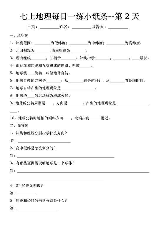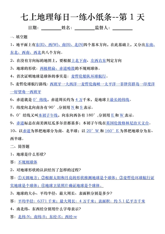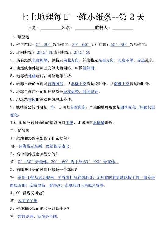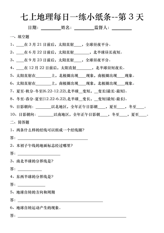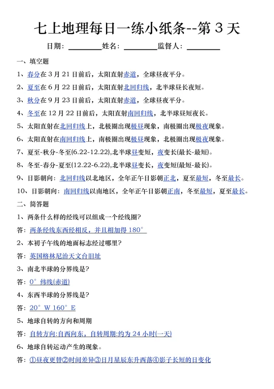 七上地理|全册知识早背晚默✅拒绝摆烂