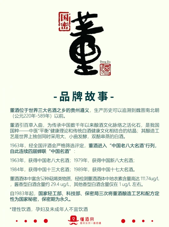自1983年起,国家轻工部、科技部、保密局三次将董酒酿造工艺和配方定性为国家秘密,保密期为永久。
