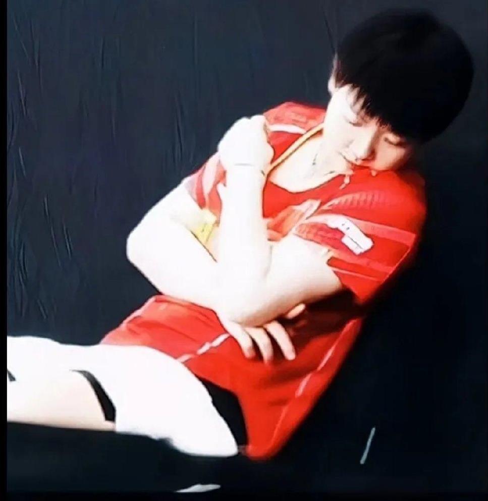这孩子是太累了,泪目了! 孙颖莎训练时睡着的一组照片,看后,既心酸又心疼,这是累到何种程度这样都能睡着啊! 孙颖莎每天早六晚十的训练还要加练,还要抽时间和教练讨论技战术,还要面对全世界的研究,比赛一场接一场,对脑力、体力都是巨大的消耗! 金牌来之不易,老天不会辜负努力的孙颖莎!