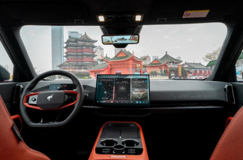 内饰方面,智趣烈马采用了简约的设计风格,舍弃了烈马上的复杂设计,搭载小尺寸的仪表和大尺寸的悬浮中控屏幕,物理按键几乎被取消,太过简单的内饰设计其实让其缺少了硬派越野车应有的机械感,反而更贴近当下城市SUV的智能化座舱理念。