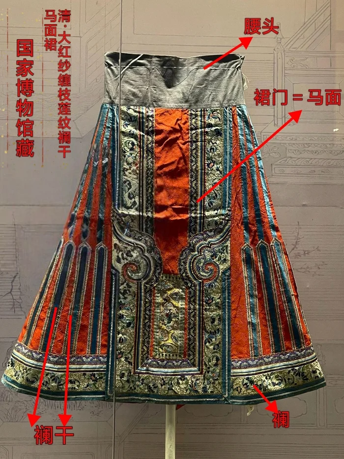 ✅马面裙的基本结构包括裙门、裙腰、裙胁和裙幅四个部分。