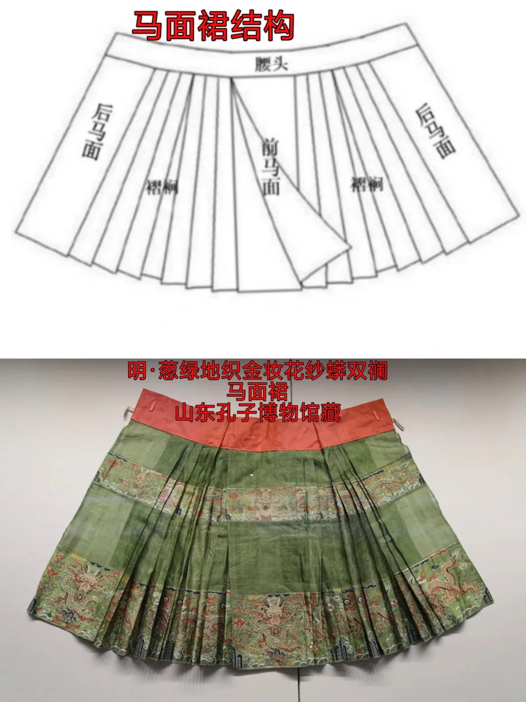 2⃣️马面裙的裙门可遮盖大腿和膝部,也可防止身体裸露,功能与马面墙类似,因此得名“马面裙”
