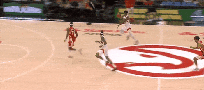NBA常规赛,老鹰对阵猛龙的比赛正在进行中。第二节比赛,英格拉姆快攻反击上篮再中,助猛龙领先10分打停老鹰。