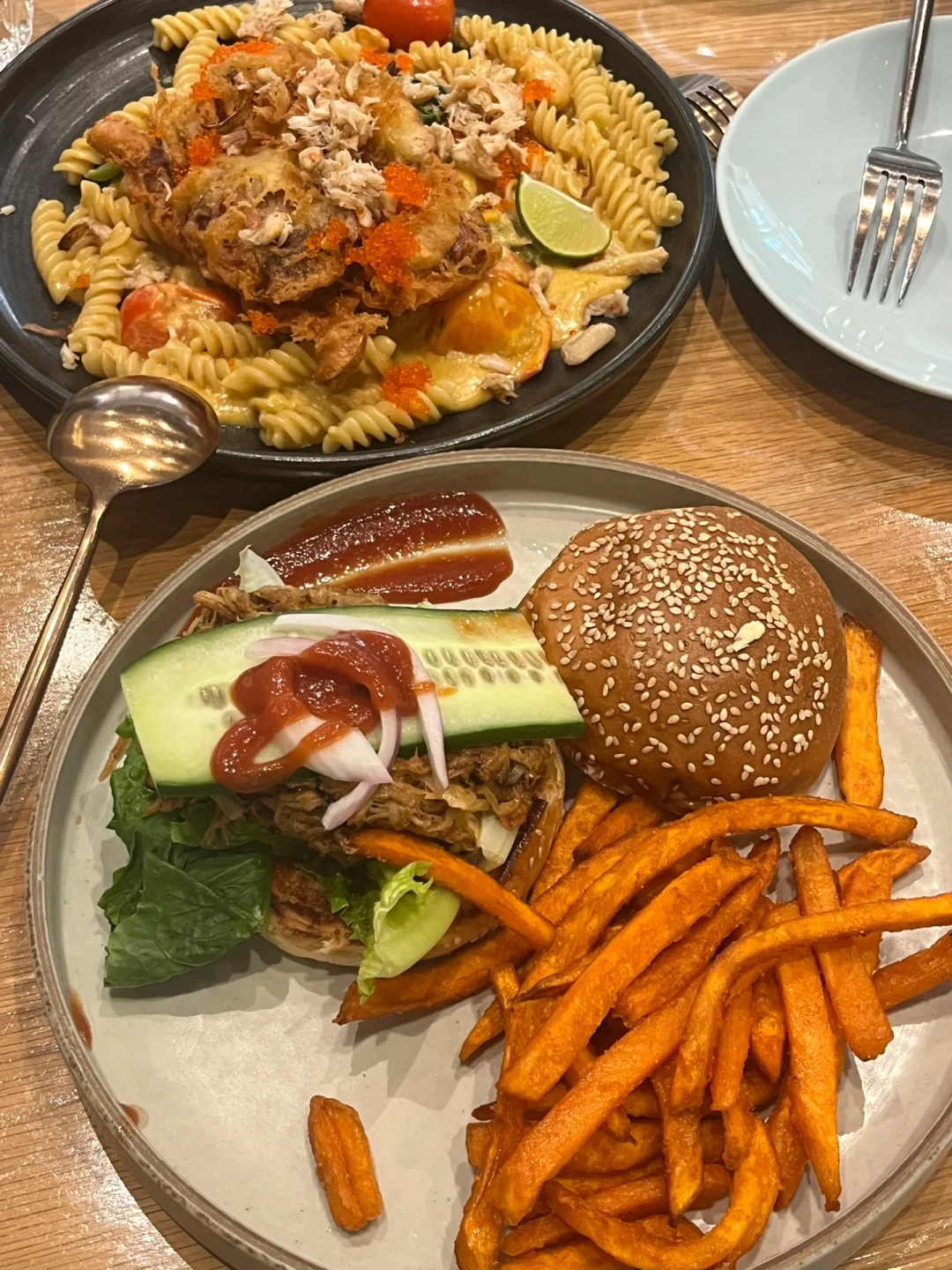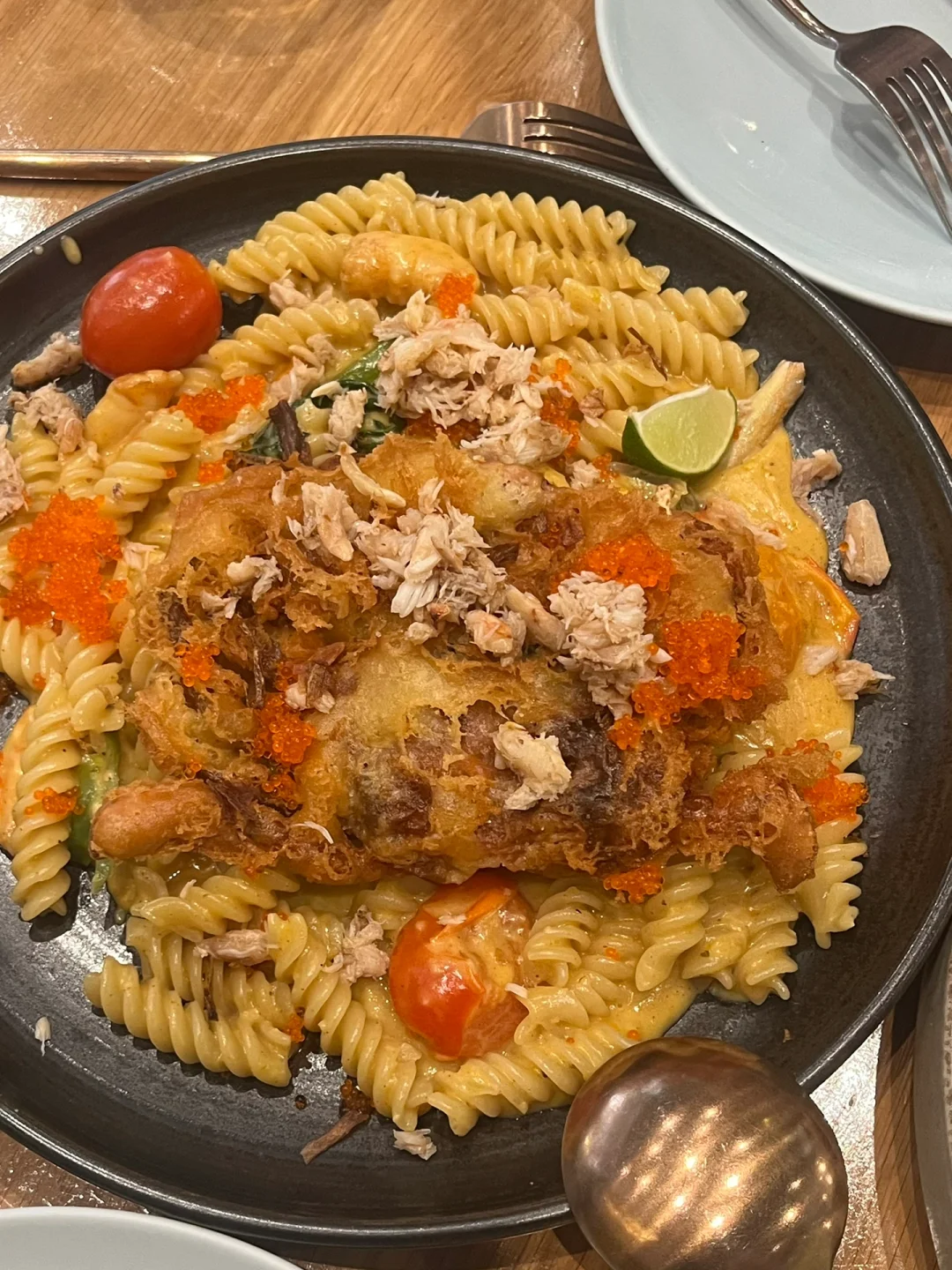 在尖沙咀。环境很舒服的美味brunch店!很适合在尖沙咀落脚。软壳蟹意面足够有记忆点,炸红薯条也很能将人征服。4.5星。