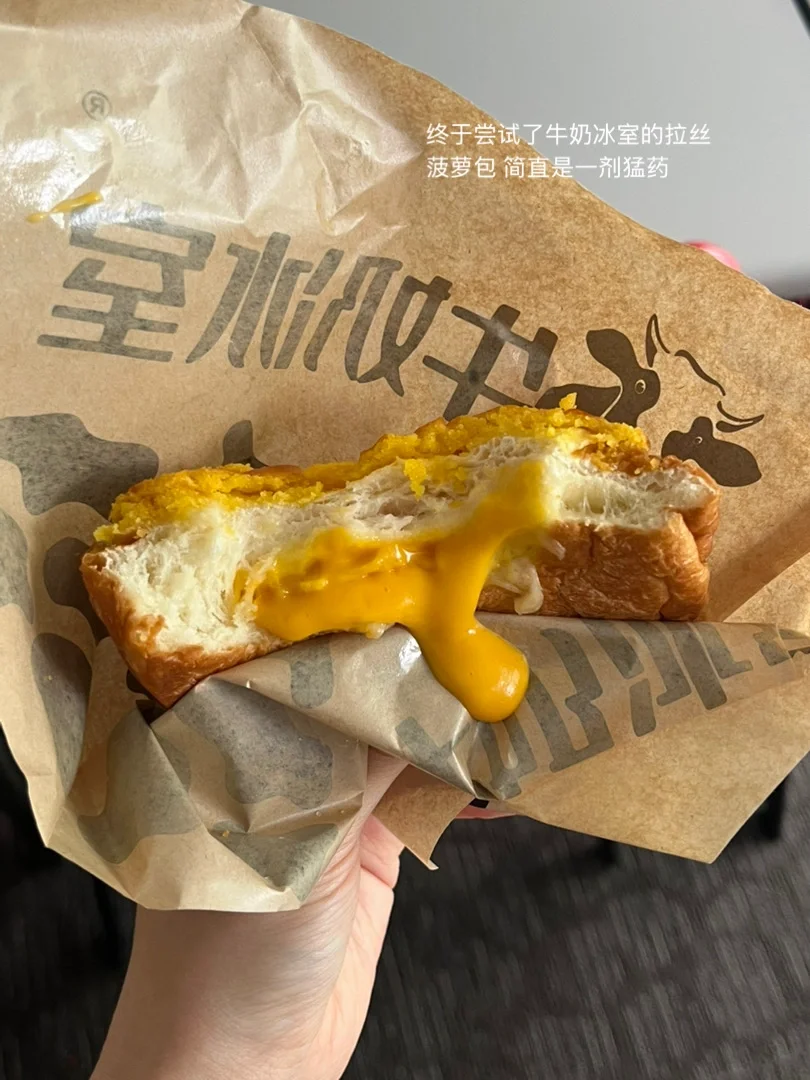 6. 牛奶冰室的拉丝菠萝包 这个芝士 它是真拉啊。3.9星。